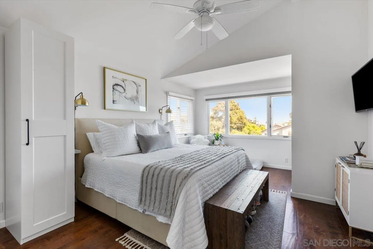 This tastefully remodeled home in the heart of Point Loma provides a versatile floor plan that caters to a seamless flow of living spaces. Upon entering on the main floor natural light floods through the La Cantina doors, merging the kitchen, dining, and living areas with an expansive deck, creating the perfect setting for indoor-outdoor entertaining. Additionally two bedrooms and a full bathroom share this space. The modern kitchen is equipped with stainless steel appliances, granite countertops, and ample cabinet storage, adjacent to a cozy nook ideal for a breakfast table or home office. The primary suite, situated on the top floor, offers breathtaking views of the bay and Coronado Bridge, the primary bathroom has a dual vanity and spacious shower along with a private deck to enjoy the view. The lower level features a bedroom with an en-suite bathroom and French doors that open to a lush, extremely private backyard. Also on this level is a laundry room with extensive storage options. Adding to the home's appeal is a converted 3rd car garage, now serving as a versatile office/man cave/she shed. This property promises a blend of privacy and luxury, with multiple outdoor spaces to enjoy the serene surroundings. Conveniently located just 1.2 miles to Shelter Island, 1.4 miles to Liberty Station, and great schools!