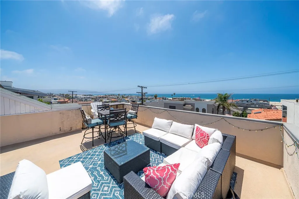 Discover the epitome of beachside luxury in this stunning furnished vacation rental, available this August, in the heart of Hermosa Beach. Imagine waking up to breathtaking ocean views, visible not only from within but also from the expansive rooftop deck. Picture yourself soaking in the sun and scenery, from Palos Verdes/Catalina to Malibu and beyond, on new, chic outdoor furniture designed for maximum comfort and style. This exquisite home is perfectly positioned in the prestigious North Hermosa Sand Section, merely two blocks from the shimmering ocean and within a pleasant stroll to the vibrant downtown. Offering a spacious layout, this apartment features two generously sized bedrooms, Split air-conditioing, a full bathroom, and a three-quarter bath, ensuring ample space for relaxation and privacy. Unique to this property, the only shared wall is the floor, providing an unparalleled sense of seclusion. Plus, you'll enjoy the convenience of first-floor entry with all the benefits of elevated living. Recent renovations have elevated this home's allure, showcasing a modern kitchen, sleek bathrooms, and luxurious beachwood-look flooring throughout. Enhanced with new canned lighting, every detail has been carefully curated to create a warm and inviting ambiance. This is more than just a vacation rental; it's a chance to live in a slice of paradise. Summer 2024 rates range from $8,000 to $12,000, varying by month. Don't miss this unparalleled opportunity to experience the best of Hermosa Beach in a vacation home that exceeds every expectation.