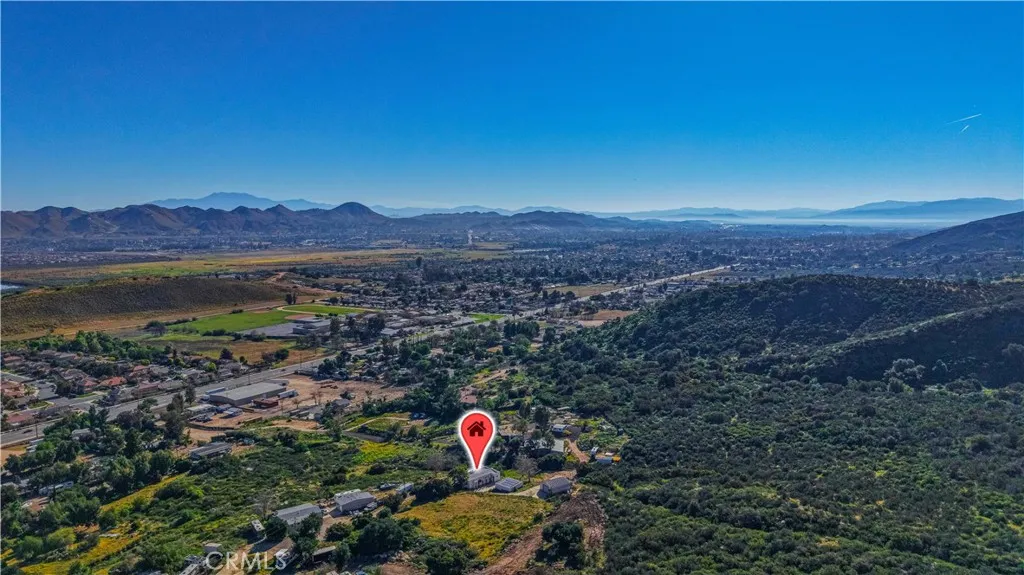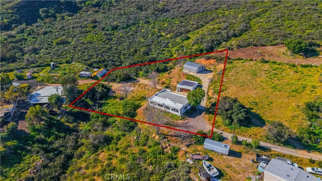Private hilltop retreat with fantastic views of the Lake Elsinore Valley, lake views, and the Ortega Mountains. This unique home offers privacy while still being close to town. Fresh interior and exterior paint give the home a clean, updated feel. The owner remodeled the home with custom plastered walls and a stucco exterior, giving it the look of a traditional home. Enjoy the views and cool breezes from the large covered front porch with beautiful archways. The home measures approximately 1,325 sq. ft. (buyer to verify) and sits on a permanent foundation. The living room features a cozy fireplace, and tile flooring runs through the kitchen, dining area, family room, hall, and hall bath. Numerous dual-pane windows and a sliding glass door provide natural light. Outside features a huge detached 2-car garage (approx. 600 sq. ft.), a large workshop (approx. 700 sq. ft.) with roll-up door and 220V, plus ample parking and a large concrete drivewayperfect for RVs, boats, toys, or projects