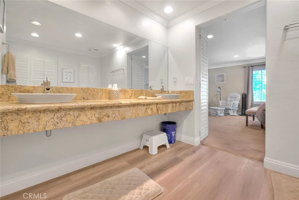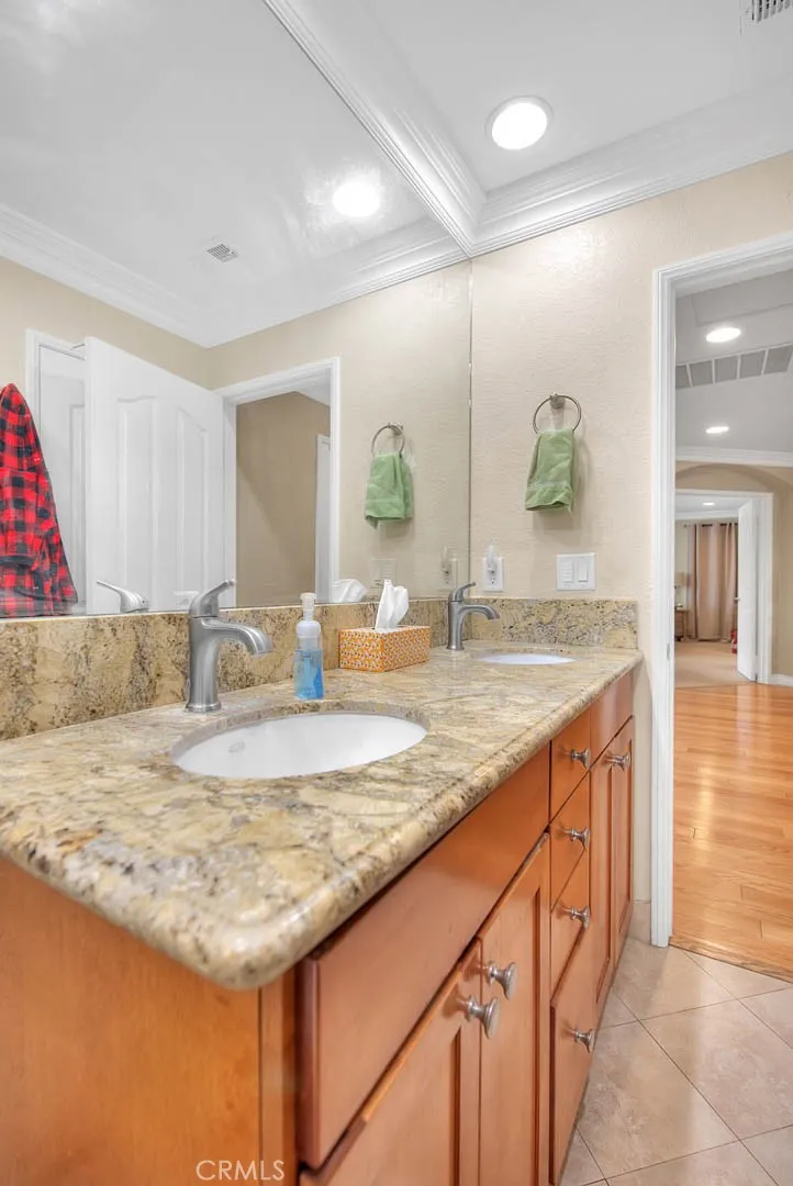 Welcome home to 1855 Ambrosia in one of Upland's highly desirable communities. The Colonies-with no Mello Roos & low HOA! This 2-story Kaufman & Broad home is located in a master-planned community which boasts 2912 square feet of living space, with an open floor plan, generous sized bedrooms and ample storage with 4 bedrooms, 2.5 bathrooms, and a flexible floor plan perfect for families or professionals seeking space and functionality. The downstairs floor plan consists of a half bathroom, a bedroom perfect for a home office or guests, a formal living room and dining room, kitchen, laundry room and an informal dining area. The kitchen has high end cabinetry, with stainless steel appliances, built-in-oven, microwave, and dishwasher with granite countertops. Located off the kitchen is a spacious family room with a fireplace to cozy-up on chilly winter nights. Upstairs, along the wooden staircase, there is a spacious loft with wood flooring and cabinetry - perfect for a child's play area, game-media room, or added living area. Additionally, there are two considerable sized bedrooms, and a full sized bathroom with granite countertops. Double-entry doors lead to the large primary bedroom with an en-suite and a large walk-in closet. There is tile, wood and carpeted flooring, plantation shutters, crown molding and recessed lighting throughout the home. The backyard has limited maintenance, with stone tiles, a wet bar and an above ground hot tub - a wonderful space to unwind at the end of a workday to host and entertain friends and family. This home is within walking distance to th