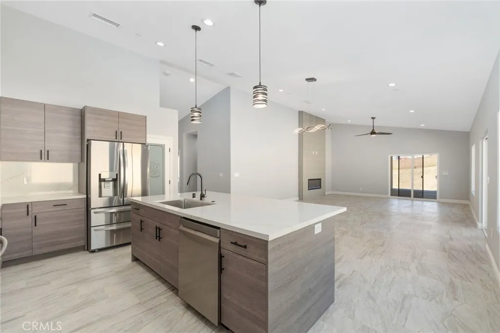 Welcome to this beautiful custom new construction home in Hesperia! This single-story home offers 2,212 sq ft of living space on a 20,585 sq ft corner lot, featuring 4 bedrooms and 3 bathrooms with a spacious open-concept layout and spacious wrap around backyard. The kitchen opens to the living and dining areas and includes upgraded cabinetry, custom flooring, modern lighting, and stainless steel appliances. Additional highlights include a smart home system, Cat-6 wiring throughout, USB-C outlets, a security camera system, Ring doorbell, paid solar system, tankless water heater, EV-ready 3-car garage, and RV parking with clean-out, plus so much more. Conveniently located near shopping, dining, and local amenities, this home offers modern living with space and functionality. Dont miss the opportunity to call this home yours!