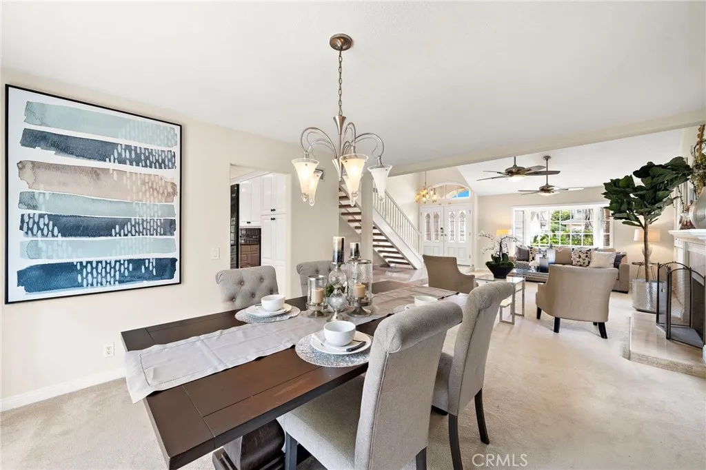 Location, Location, Location! Welcome to this beautifully upgraded and highly desirable Stratford home, ideally situated on a quiet interior tract just moments from Harper Park and close to Courreges Elementary, within a highly sought-after neighborhood zoned for top-rated schools. This spacious and thoughtfully designed residence offers 5 generous bedrooms and 3 full bathrooms, including a convenient main-floor bedroom and full bathperfect for guests, extended family, or a private home office. Step inside to soaring vaulted ceilings in the elegant living room, highlighted by a charming bay window and a warm, inviting fireplace that fills the space with abundant natural light. The large open-concept kitchen is both stylish and functional, featuring granite countertops, an oversize built-in in kitchen-aid refrigerator, newer appliances, ample cabinetry, and a spacious eat-at breakfast bar. The kitchen flows seamlessly into the comfortable family room, creating an ideal space for everyday living and effortless entertaining. The family room showcases custom built-in shelving and a second cozy fireplace, adding both character and functionality. Upstairs, the expansive and serene primary suite serves as a luxurious private retreat with a dual-sink vanity, quartz countertops, an ensuite bathroom, and separate his-and-her walk-in closets offering abundant storage. The upstairs guest bathroom is equally impressive, featuring dual sinks, a walk-in shower, and a separate soaking tubperfect for relaxation. Additional highlights include upgraded quartz countertops in all three bathroom