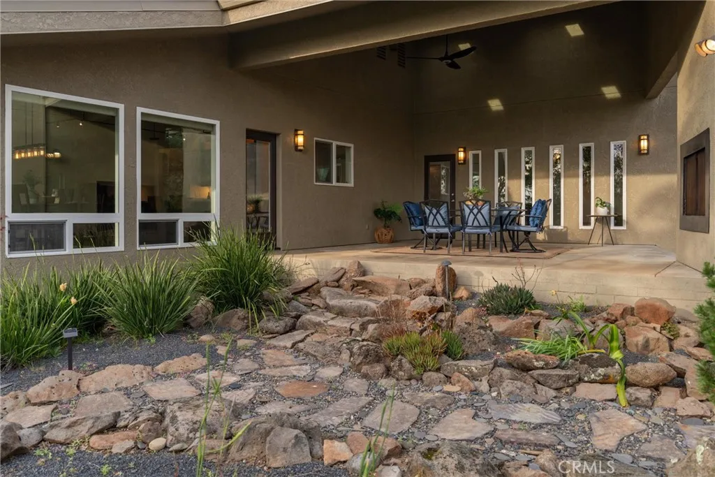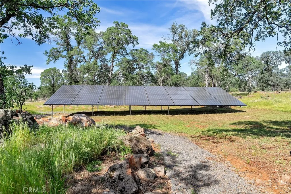 This stunning 40 acre property at offers the perfect blend of luxury and privacy. Boasting a beautiful 3-bedroom, 3.5-bath home with en-suite bathrooms in each, it provides a comfortable and elegant living space. The property is well equipped with modern amenities including 32 owned ground-based solar panels and 2 Tesla Powerwalls, ensuring energy efficiency and sustainability. The remodeled kitchen features honed granite countertops, a built-in refrigerator, and custom cabinetry from Chico Wood Craft. The master bath includes a heated floor and curbless shower entries, adding to the home's luxurious feel. Additional highlights include hot water recirculating system, a built-in pellet stove with thermostat, hardwood floors throughout, designer light fixtures, and automatic irrigation. The home also features a Big Ass ceiling fan in the living room and two patios for outdoor enjoyment. For those with hobbies or projects, the property offers a small shop with an air system in the garage, cabinets, workbench, and an electric car charger. Outbuildings include a well house, Tesla Powerwalls, and a shed. The gated access, private road, septic system, and AT&T fiber and WiFi ensure privacy and convenience. The Homeowners Association fee of $700 a year covers the gate and road maintenance, adding peace of mind. Dont miss the chance to own this exquisite property in a serene setting.