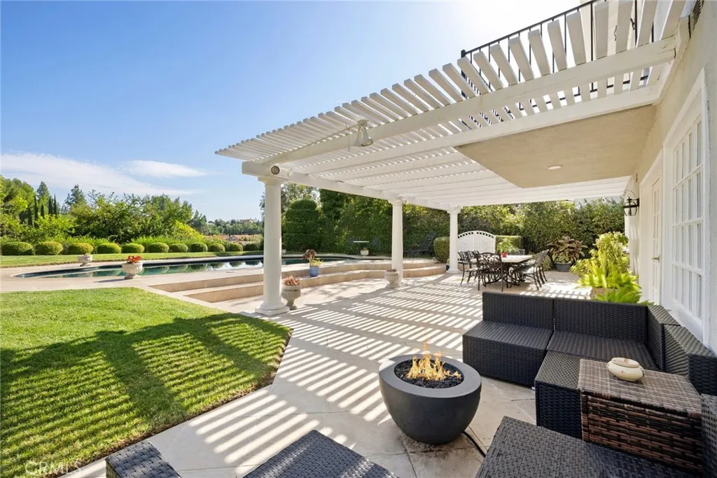 Stunning View Home in Prestigious Porter Ranch! Beautifully maintained 2-story residence offering 3 bedrooms, 3 bathrooms, plus an oversized bonus room on a sprawling 9,000+ sq ft lot with a sparkling pool and breathtaking mountain views. From the moment you enter, this home reflects a high level of care and pride of ownership. The spacious living room features soaring ceilings, elegant stone flooring, and a custom fireplace that creates a warm yet sophisticated focal point. Entertain in the formal dining room or enjoy cooking in the updated kitchen complete with a large center island, walk-in pantry, double oven, and built-in refrigerator. The kitchen opens to the inviting family room showcasing wood flooring, a fireplace, wet bar, built-in cabinetry, and double French doors leading to the beautifully landscaped backyard. Step outside to your private retreat featuring a sparkling pool and spa, covered patio, lush landscaping, and panoramic mountain views ideal for entertaining or relaxing in complete tranquility. Upstairs, the spacious primary suite offers double-door entry, a walk-in closet, sitting area, and an ensuite bathroom with separate tub and shower. A private balcony captures sweeping mountain views the perfect place to enjoy peaceful mornings or sunset evenings. An expansive bonus room with its own fireplace and wet bar provides flexible space for a media room, office, game room, or potential additional bedroom. Additional highlights include recessed lighting, generous cabinetry throughout, a private laundry room with sink, and a three-car garage. Located near