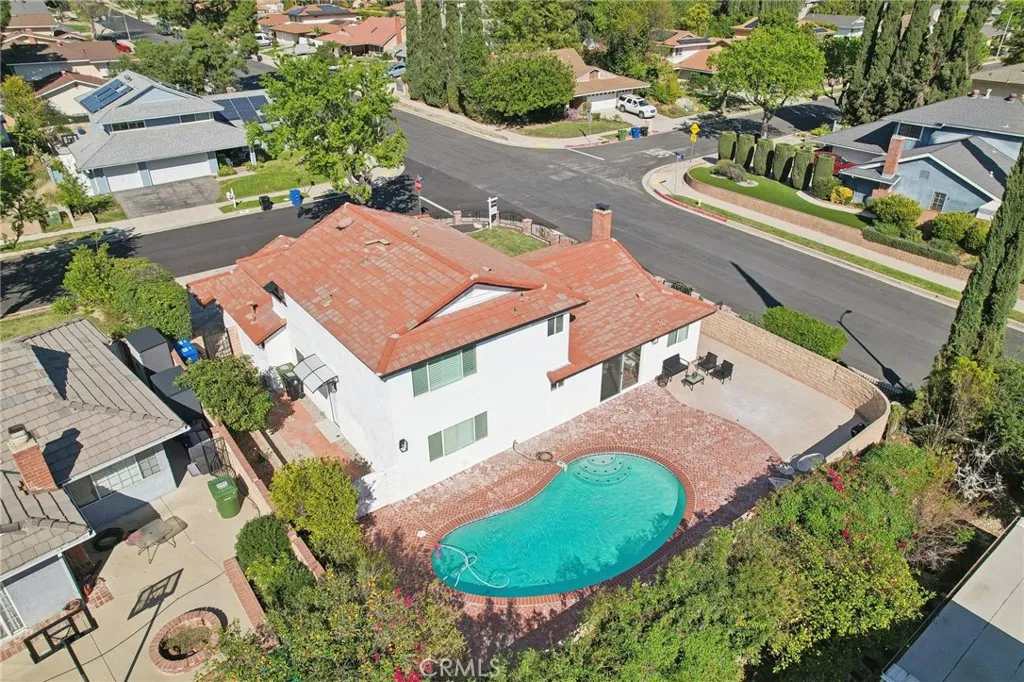 Beautifully remodeled gated home located in a highly desirable Porter Ranch neighborhood. Features include 5 bedrooms and 3.5 updated baths with over 2150 sqft of living space. Walk through the double doors and be amazed what this true beauty has to offer. Large light & bright living room with modern fireplace opens to the dining area, brand new custom kitchen with quartz counters, a pot filler and stainless steel appliances, two large bedrooms and two large bathrooms downstairs, 3 bedrooms and 1.5 baths upstairs, fully finished two car attached garage with direct access, private back yard with pool and so much more. Additional features include new dual pane windows, laminate flooring and recessed lighting throughout, new paint inside and out, updated central A/C and Heat. This is a must see home in a beautiful neighborhood with great schools and just minutes to the Vineyards in Porter Ranch.