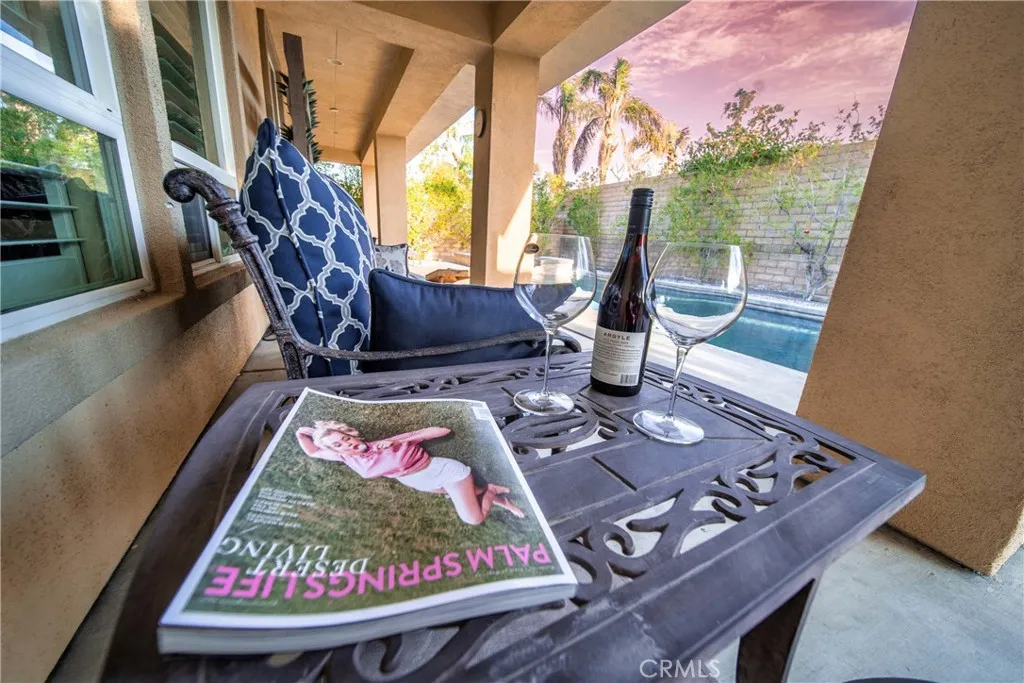 Unveil your private desert oasis within the prestigious Tuscany community of Rancho Mirage. This beautifully furnished 3-bedroom, 2-bathroom haven stretches across 1,843 square feet, capturing breathtaking mountain vistas that will leave you in awe. Step into the inviting great room, where a crackling fireplace beckons relaxation and a flat-screen TV sets the stage for movie nights or game days with loved ones. The seamless flow guides you to the well-equipped kitchen, brimming with granite countertops, a built-in microwave, dishwasher, and double ovens a chef's delight for preparing culinary masterpieces. Adjacent, the charming breakfast nook invites you to savor your morning coffee while soaking in the serene surroundings. Impress your guests with elegant dinners in the separate formal dining room, creating unforgettable culinary experiences. Retreat to the primary bedroom, your personal sanctuary featuring an en-suite spa-like bathroom boasting a separate soaking tub and shower, where you can unwind in the epitome of comfort. Outside, your own private pool and spa beckon, offering the perfect spot to bask under the desert sun, take a refreshing dip, or gaze at the starlit sky in the evenings. The attached double-car garage provides convenient parking with direct entry for added ease. Privacy remains paramount with plantation shutters gracing every window throughout the home, ensuring tranquility within your personal haven. The gated Tuscany community further elevates your experience with resort-style amenities, including a sparkling community pool and spa, a children's
