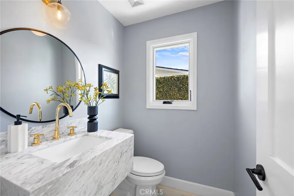 1924 Beryl presents an outstanding opportunity to own a quality designed, single level home in coveted Dover Shores. Spanning 2,571 square feet with a bright open floorplan, featuring four bedrooms and three and one half baths. Through the privacy gate, an inviting Dutch door entry welcomes into a generous great room with gas burning fireplace and dedicated dining area. This main space is accentuated by walls of glass via the 15 foot sliding door, creating an indoor/outdoor connection to the rear oasis with pool and firepit. The great room flows directly to a Chefs kitchen with generous-sized Carrara marble counters and island, bar seating, white Shaker cabinetry, stainless farmhouse sink, stone decorative backsplash and refinished custom cabinetry. High end appliances include a Sub Zero glass front refrigerator with dual freezers, drawer microwave and a six-burner Wolf range and oven. The main primary suite is a spacious, beautiful retreat with French doors opening to a private brick patio, a vaulted beam ceiling, oversized walk-in closet with custom built-ins, and a luxury spa bathroom with individual marble vanities, soaking tub, and a walk-in shower. Two secondary bedrooms share a bath, and the fourth bedroom, complete with ensuite bath, is separately located for privacy, while having flexibility for use as an office, game room or guest suite. A sizeable laundry room is off the bedroom hallway and a direct access two car garage provide added conveniences. The backyard presents a stunning newly built swimming pool with Baja shelf and spa. Generous patios and grassy lawns