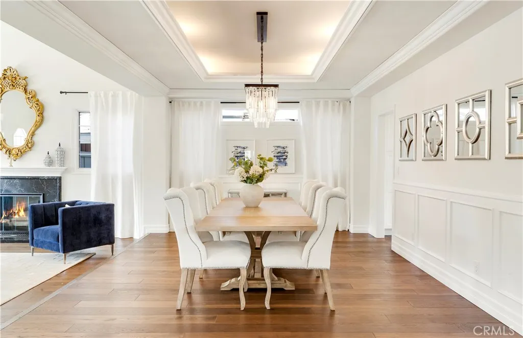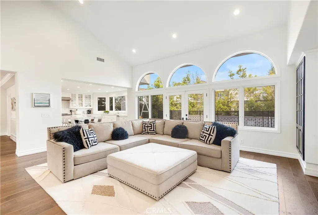 Located on the highly desirable inner loop of the Port Streets and within Phase 1 of the community, this custom residence offers close proximity to the greenbelt and a well-positioned setting within one of Newport Beachs most sought-after neighborhoods. The home features light-filled interiors with vaulted ceilings, skylights, and wide-plank oak flooring throughout. A formal living room with fireplace and a separate dining area provide defined entertaining spaces, while the open-concept kitchen and family room serve as the central gathering area of the home. The kitchen includes porcelain countertops, a large center island, upgraded appliances, and custom cabinetry. French doors open to the backyard, creating a seamless indoor-outdoor flow. The private outdoor space includes a spool with waterfall feature, fire pit, and a generous grassy area suitable for a variety of uses. The floor plan includes a main-level bedroom with an oversized full bath, offering flexible use for guests or additional living space. All bedrooms are generously sized. Upstairs, the primary suite is situated on its own wing of the home and includes dual walk-in closets and a spa-style bathroom. Two additional bedrooms feature built-in desks and storage, and a spacious bonus room offers the potential to be converted into a fifth bedroom. A dedicated laundry room completes the upper level. Additional features include surround sound and a three-car garage with epoxy flooring. Port Street residents have access to community pools, clubhouses, sports courts, parks, and walking trails, along with convenient p