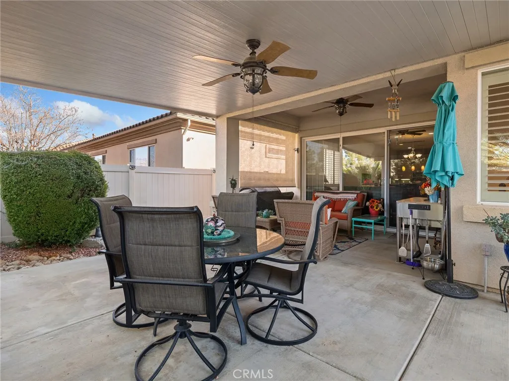 Welcome to resort-style living in the highly desirable 55+ Del Webb Solera community in Apple Valley! This beautifully maintained home offers the perfect blend of comfort, elegance, and active adult living. Featuring 2 spacious bedrooms plus a versatile office/den, and 2 bathrooms, this thoughtfully designed layout includes a primary suite with a separate bathtub and shower in bathroom, with a secondary en-suiteideal for guests or multi-generational living, this bathroom has a beautifully remolded shower. Soaring 10-foot ceilings throughout create an open, airy feel, while the stunning stone exterior adds exceptional curb appeal. The heart of the home is the inviting kitchen, complete with elegant Corian countertops paired with stunning backsplash, a convenient breakfast bar, and stainless-steel appliancesperfect for everyday living and entertaining, let's not forget the water purification filter system in kitchen. The cozy living room features a charming fireplace, creating a warm and welcoming space to relax. Beautiful Plantation shutters throughout home and solar that new owner will assume that covers the electric bill. Step outside to a beautifully landscaped backyard with a covered patioideal for enjoying peaceful mornings or evening gatherings. Living in Del Webb Solera means enjoying a true resort lifestyle with incredible amenities including a sparkling pool, clubhouse, pickleball courts, golf course, and a full calendar of social activities and events. Dont miss this opportunity to enjoy low-maintenance living in one of Apple Valleys most sought-after active adult