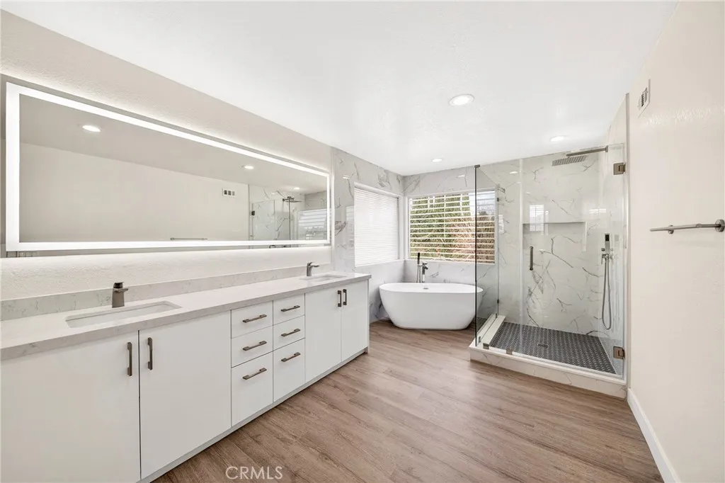 ***ACTUAL SQUARE FOOTAGE IS SIGNIFICANTLY LARGER THAN PUBLIC RECORDS DUE TO A BUILDER ERROR. CORRECTION IS IN PROGRESS*** Bright South-Facing, Fully Upgraded Gated Home in Northridge Filled with natural sunlight from its desirable south-facing orientation, this beautifully upgraded 4-bedroom, 3.5-bath home is located in a sought-after gated community in Northridge. The property has been extensively remodeled with hundreds of thousands of dollars in upgrades, offering a bright, open, and modern living experience. High ceilings and an open floor plan create an airy atmosphere throughout. The updated kitchen features quartz countertops, stainless steel appliances, and abundant cabinetry, and opens seamlessly to the family room with a cozy fireplaceideal for everyday living and entertaining. The lower level features an additional flexibl-use living area that may serve as a secondary family room, home office, or multi-purpose space. The spacious primary suite boasts vaulted ceilings, walk-in closets, and a tastefully remodeled en-suite bathroom. All bathrooms have been updated with elegant, modern finishes. Enjoy private front and back yards with a wood patio, perfect for relaxing or hosting guests. Conveniently located near shopping, dining, top-rated schools, and easy freeway access, this turnkey home offers the perfect combination of light, space, security, and convenience.