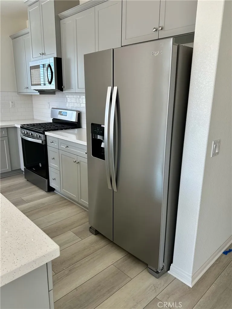 Welcome to this beautifully upgraded single-story home with NO REAR neighbors! Bright and airy, the residence features designer wide vinyl plank flooring throughout the main living areas. The spacious primary suite offers dual vanities, a soaking tub, and a walk-in shower, while two additional bedrooms each include walk-in closets. The home is appointed with elegant quartz countertops and comes complete with a refrigerator, washer, and dryer. The garage includes an EV charging outlet, adding modern convenience. Enjoy a professionally landscaped backyard ideal for relaxation or entertaining. Owned solar panels enhance energy efficiency and reduce utility costs. Ideally located just minutes from UCR and nearby shopping and dining.