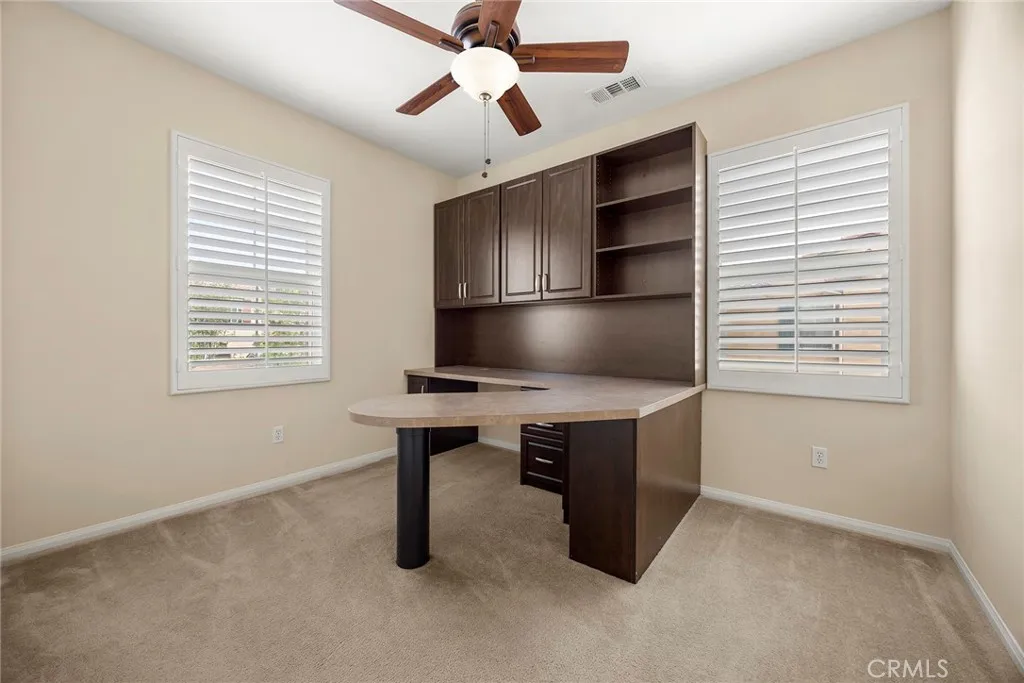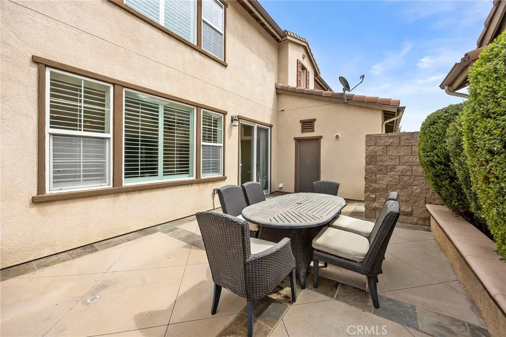 Beautiful detached home in the desirable Villagio community featuring 4 bedrooms and 3 full baths in the largest floor plan. Open-concept layout with spacious family room and pre-wired surround sound, perfect for entertaining. Upgraded kitchen includes maple cabinetry, granite countertops with extended backsplash, large island, stainless steel appliances, double oven, 5-burner cooktop, and brand-new refrigerator. Main level offers upgraded stone flooring, plantation shutters, ceiling fans throughout, plus a bedroom and full bath downstairs and indoor laundry room with washer and dryer. Upstairs features 3 additional bedrooms, including one with built-in office space. Spacious primary suite includes walk-in closet and dual marble vanities. Carpet upstairs. Private backyard with built-in BBQ and large stone island, ideal for outdoor entertaining. 2-car attached garage with built-in shelving. Community amenities include pool, spa, and playground. Conveniently located near Yorba Linda Town Center, Yorba Linda High School, and Black Gold Golf Course. Perfect lease opportunitydont miss it!
