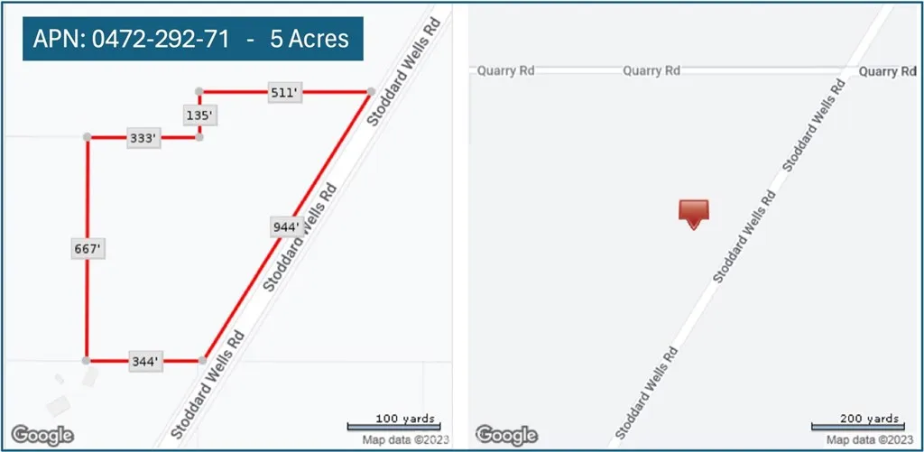 Seize a prime investment opportunity in Apple Valley with this 25-acre lot located between Stoddard Wells Rd, Quarry Rd, and Fairfield Ave, setting a seamless foundation for your vision. Positioned about 2.6 miles from the future Brightline High Speed Rail Station and near Highway 15 & Walmart Distribution Center, this listing promises significant growth potential in a town poised for transformation. Ideal for investors looking to capitalize on Apple Valley's expansion, this lot offers visibility, accessibility, and the promise of appreciation. Here, the opportunity to shape the future of a burgeoning community awaits. Invest in a parcel that stands at the crossroads of progress and potential in Apple Valley.