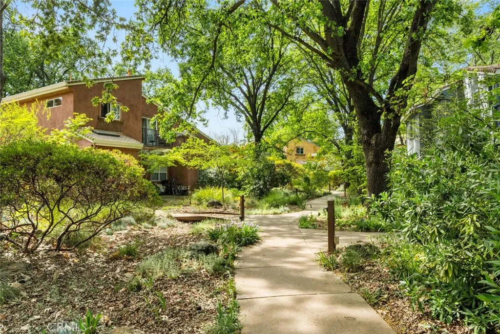 Nestled in the heart of Chico, 1997 Wild Oak Lane offers a unique opportunity to be a part of Valley Oaks Village in a thoughtfully designed Cohousing communitywhere connection, sustainability, and modern living come together seamlessly. Located just blocks from Bidwell Park in Chico, this home provides a rare blend of private comfort and shared amenities that foster a true sense of community. This inviting home features a bedroom and bathroom downstairs and a large living room with stunning bamboo flooring. The open concept kitchen includes granite countertop overlay, stainless steel appliances, and plenty of cabinetry. Check out the beautiful all inclosed sunroom that invites an abundance of natural light into the home. Upstairs offers a newly remodeled bathroom with Jacuzzi tub, quartz countertops, and laminate flooring. One of the two bedrooms features a secondary loft, perfect for a twin bed or extra storage. The primary bedroom highlights its own balcony and an en suite bathroom with a large tiled shower. Laundry closet is located upstairs and includes a flood stop system. In the backyard you will find patio pavers perfect for an herb garden or gathering space, and a newer 6x8 shed. Plug your EV car into the newly installed level 2 wall box with a 40 amp charger. As part of a Cohousing development, residents enjoy access to shared amenities such as a pool, sauna and an outside shower, bike storage sheds, a woodworking shop and craft room, large grassy area with a small playground, community garden, and gathering spacesperfect for hosting events, shared meals, or simpl