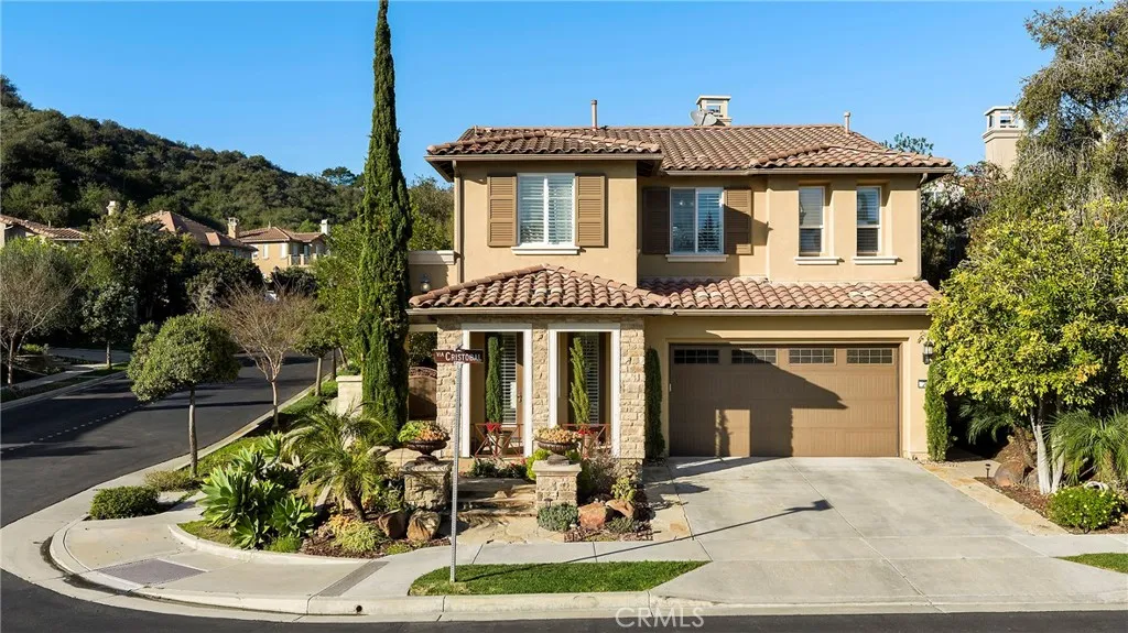 Set on a quiet corner lot in Talegas desirable Sabella neighborhood, 20 Via Cristobal pairs timeless Mediterranean architecture with a light, modern interior and a backyard designed for privacy and calm. Mature trees and layered landscaping create a serene outdoor retreatlush, shaded, and beautifully secludedwhile nearby trails and foothill paths invite daily connection to nature. Inside, the home unfolds across 2,579 square feet with a floor plan that feels both generous and intuitive. The recently updated main level features wood-look tile flooring, a refreshed kitchen with quartz countertops, crisp shaker cabinetry, and an open flow to the family roomideal for everyday living and easy entertaining. Natural light fills the space, softening clean lines and highlighting thoughtful details throughout. Upstairs, hardwood flooring adds warmth to all four bedrooms, including a spacious primary suite with a spa-inspired bath, dual vanities, soaking tub, walk-in shower, and generous closet. A built-in desk and loft-style workspace offers flexibility for work, study, or creative pursuitsan easy extension of modern life at home. With 4 bedrooms, 2.5 baths, and a 6,375-square-foot lot, the home balances comfort and functionality. A two-car garage includes an EV charger, adding convenience and future-forward appeal. Life in Talega brings access to resort-style amenities including pools, pickleball and tennis courts, clubhouse facilities, parks, and miles of hiking and biking trailsalong with top-rated schools and a strong sense of community. Here, design, livability, and lifestyle co