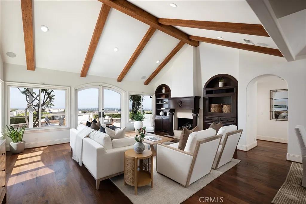 Welcome to 2001 Yacht Resolute, an exceptional single-level residence in the guard-gated community of Seaview in Newport Beach. Set on a rare corner lot with premier city and ocean views, this customized home offers an elevated coastal lifestyle. Enter through a private gated courtyard to an inviting outdoor dining area with a built-in BBQ that is perfect for year-round entertaining. Inside, light-filled living spaces feature soaring ceilings, natural wood beams, and a cozy fireplace. The dining room connects seamlessly to the gourmet kitchen, complete with top-tier appliances, a spacious pantry, and a charming breakfast nook with its own fireplace. The serene primary suite enjoys sunset views and a spa-like bath with dual closets, a soaking tub, and a walk-in shower. Two additional bedrooms share a full bath, offering flexibility for guests or a home office. An expanded laundry room with washer and dryer hookups and a powder bath complete the thoughtful layout. Additional highlights include hardwood floors, fresh paint and carpet, updated landscaping, generous storage with attic access, and a two-car garage. A wrap-around stone patio extends the living space outdoors, surrounded by mature trees and lush greenery for privacy. With its highly desirable single-level design and resort-style amenities including guard-gated security, pool, spa, and tennis courts this home presents a rare opportunity moments from world-class shopping, dining, and beaches.