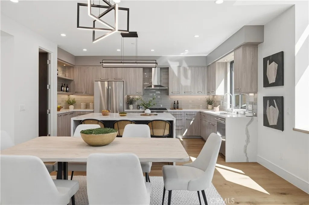 Brand-New Construction in Prime North Redondo Beach! - Tucked away in one of North Redondos most sought-after neighborhoods, this stunning front-unit townhouse combines modern luxury with effortless coastal living. Designed to maximize natural light, the home features a bright, open layout and elegant finishes throughout. A highlight of the property is the spacious mezzanine level with its own balconyperfect as a media lounge, home office, or play area, offering flexibility for any lifestyle. The inviting living area centers around a sleek gas fireplace and is enhanced by wide-plank white oak hardwood flooring, solid-core doors, and recessed LED lighting. The gourmet kitchen is a showpiece, featuring an oversized island with quartz countertops, a stylish tiled backsplash with hidden outlets, and high-end cabinetry with soft-close metal drawers. Top-of-the-line Thermador stainless steel appliancesincluding a gas range, French door refrigerator, dishwasher, and microwave drawercomplete this impressive space. Each bathroom is thoughtfully designed with custom mirrors, contemporary lighting, and Hansgrohe fixtures. The home also includes a dedicated laundry room with a sink and side-by-side hookups, providing everyday convenience. Comfort is guaranteed with central air conditioning, forced-air heating, and a tankless water heater for energy efficiency. Additional features include Andersen windows, solar panels, and a two-car garage with a wooden door. The smart home system offers peace of mind with motion sensors, exterior cameras, a video doorbell, and remote control for light