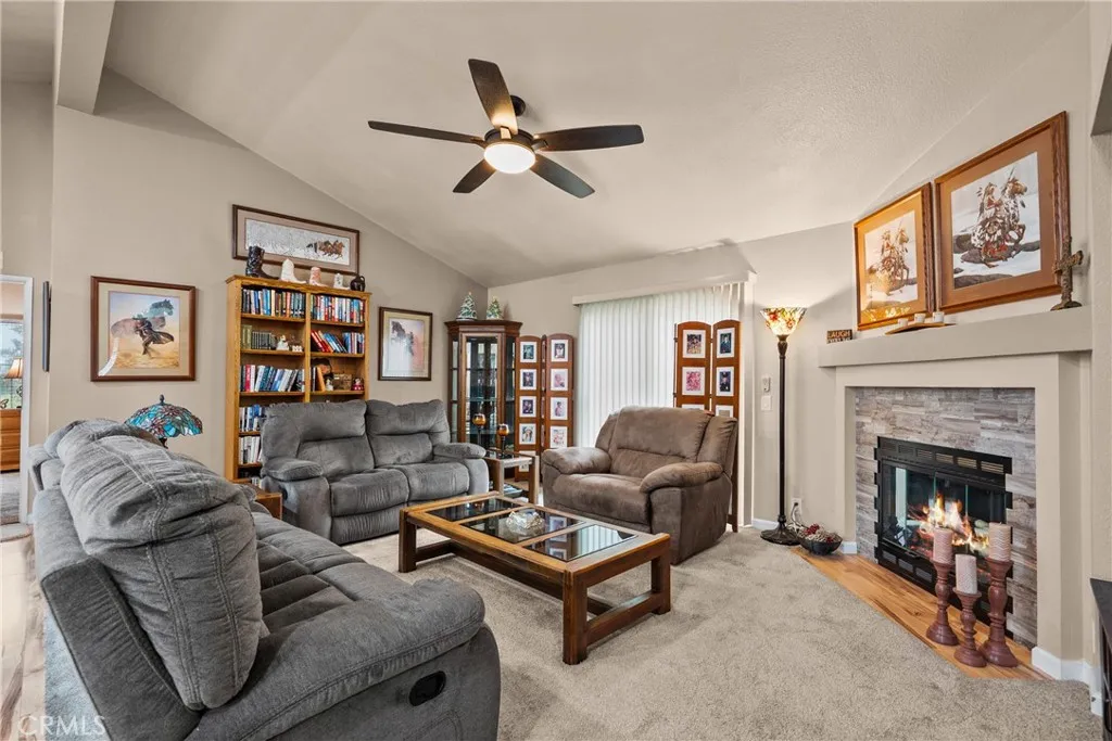 WELCOME HOME! Private corner lot with fantastic view. Recently painted exterior and interior. Newer roof. Upgraded plank laminate and carpet flooring throughout/recessed lighting/ceiling fans in both bedrooms and living room. Remodeled Kitchen, large center island with granite, ample cabinet space and newer appliances. Primary bedroom with slider to outside patio. Both bathrooms have been upgraded with granite counters and newer vanities - primary bath with deep soaking tub and separate shower. Living room with cozy fireplace and additional slider to the back yard. Open flowing floorplan. Separate indoor laundry room. Direct access to 2 car garage. Nice size backyard with a view of the valley. This home is located in Canyon View Estates which includes community amenities such as a 24/7 guard gate, usage of 2 pools and spa, 2 sport courts, and 2 play areas. Canyon View also a has available a community clubhouse and RV storage. Home is located near Discovery park, bike & walking paths, highly rated schools and shopping. Easy freeway access. Welcome Home!!