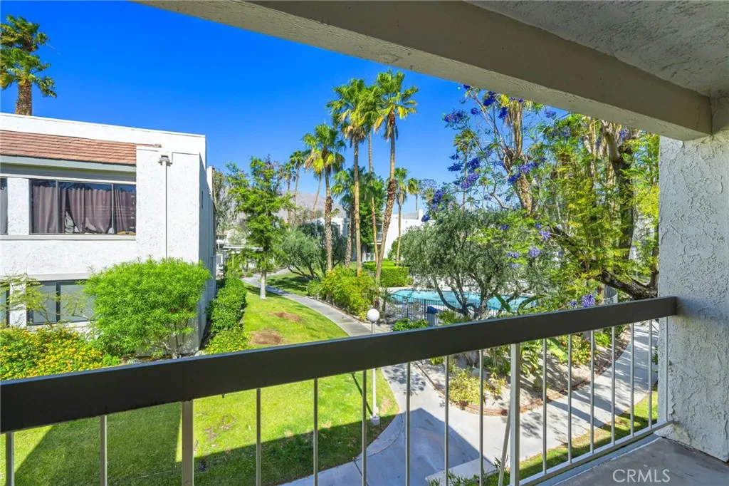 BOM. Approved Short Sale at listed Price. Tens of thousands , lower than any other property currently listed on Via Miraleste!! at the gates of Riviera Gardens. A lush and well kept community, that is known for its mature landscaping, multiple pools, and spas, with a great location that keeps you close to downtown Palm Springs, without being in the thick of it. Inside, the floor plan is spacious, efficient, and inviting-perfect as a weekend escape, full time home, or rental friendly investment. The kitchen and living area are flooded with soft, natural light, and tremendous mountain views from nearly anywhere you sit. A south facing patio creates additional living space with built in motorized roll down shades, and mountain views. Bright, clean, and move- in ready, this home is being sold turnkey furnished as well. With laundry in unit, assigned parking, and gated secure community access, the essentials are covered, its the kind of place that lets you live simply, quietly, and just a few minutes from all the fun.
