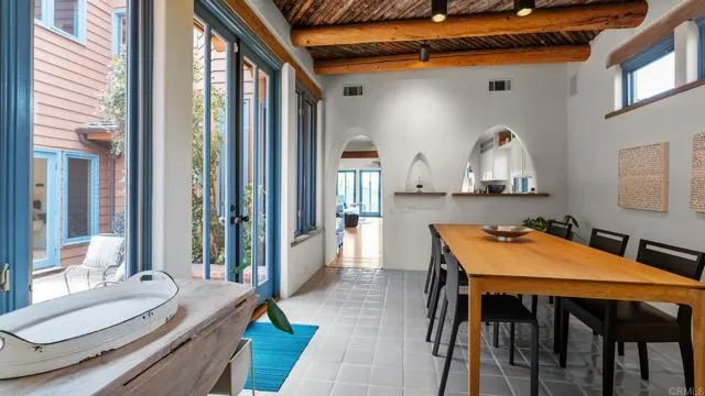Fully Furnished Rental Gardener and Fountain Services included 1-6 months $15,000/month (utilities included) 6+ months $13,000/month (utilities not included) $20,000/month for summer months (utilities included) Short-term also available. Check VacationHomesbyJodi.com for availability. This beautiful Cardiff Oceanview home can accommodate up to 6 guests in its spacious 3,028 square feet, complemented by extensive outdoor living areas. The living room features vaulted ceilings adorned with open exposed beams, creating an inviting atmosphere. The formal dining room is enhanced by eight-foot French doors that open up to the center courtyarda private oasis with a tranquil water feature accessible from multiple rooms. The first floor includes two bedrooms, one with a king-size bed and the other with a double bed, each equipped with its own full bathroom. Up the handcrafted staircase, opens to a bright reading room with ocean views. The front upstairs bedroom includes a queen bed, TV, surround sound, an ensuite full bath, and 8 French door leading to the wrap-around deck facing the West. This property is perfect for your vacation enjoyment! Up the winding stairs, the rooftop terrace has a full outdoor kitchen, fireplace, dining table and lounging space with unobstructed views of the Pacific Ocean and Gorgeous Sunsets! Music can be played through the whole house sound system, both inside and to all of the outdoor entertaining areas.