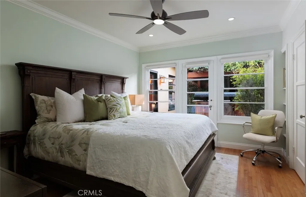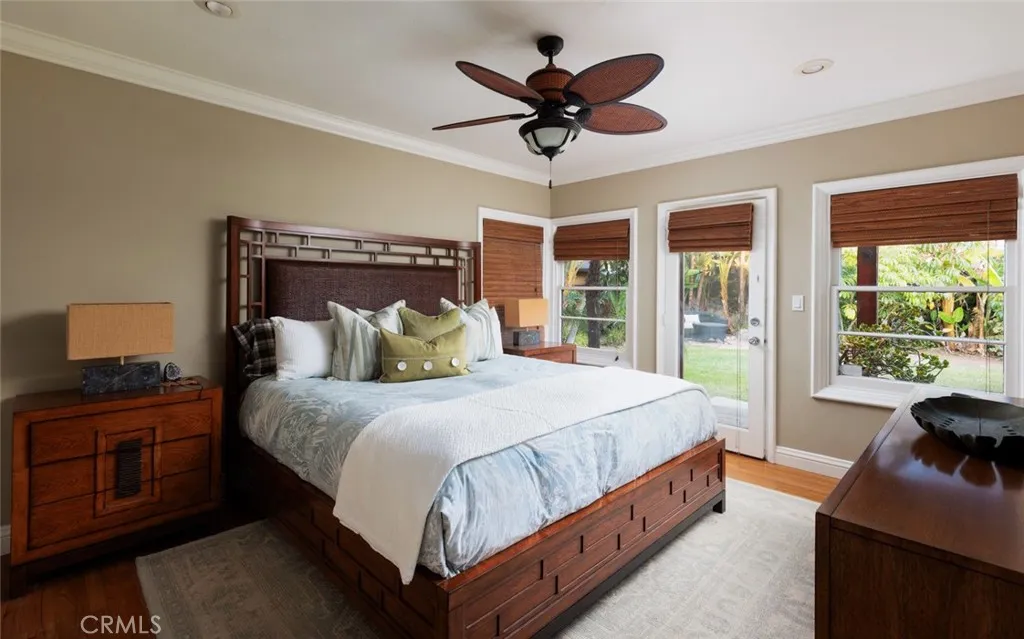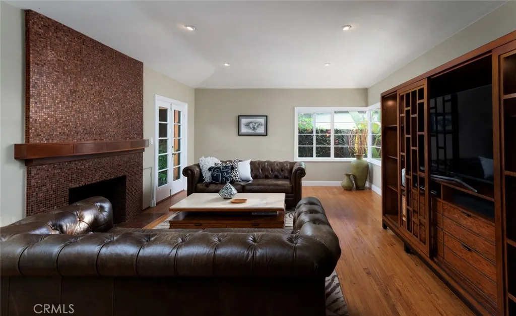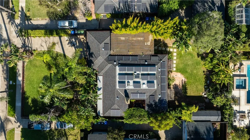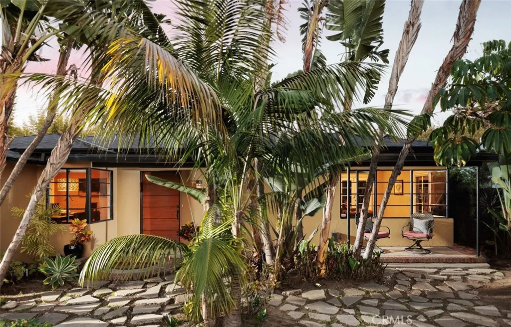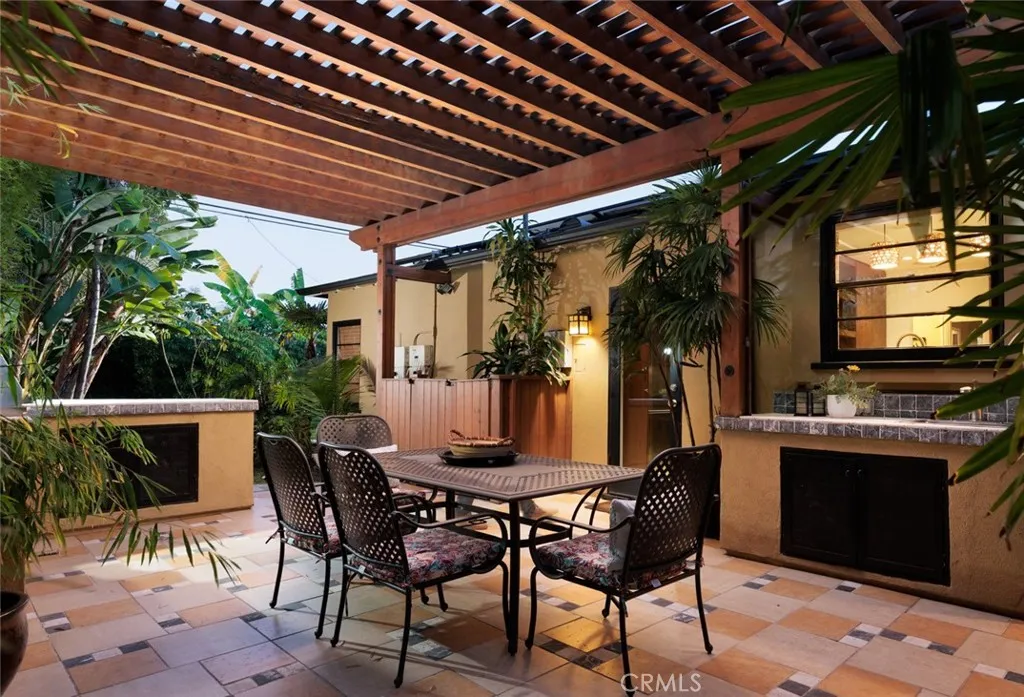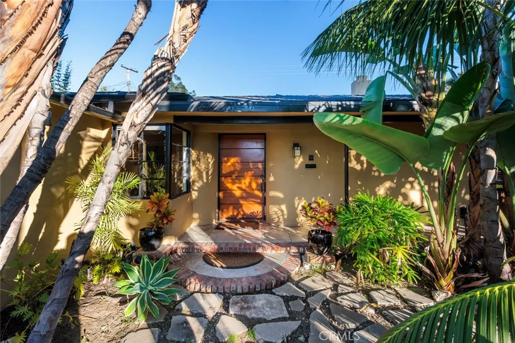 Tropical serenity surrounds this Art Decoinspired, Asian-influenced, single-story Floral Park historic home, the Dr. M McMurray house, built in 1936 and with Mills Act tax savings! A sophisticated blend of contemporary Pacific design and classic Moderne architecture, this residence offers an exceptional fusion of style, comfort, and seamless indoor-outdoor living, with captivating views from nearly every window. Rich hardwood floors, crown moldings, French doors, skylights, and thoughtfully selected natural finishes set a refined tone throughout. The formal living room showcases a coved ceiling, a dramatic bronze glass mosaic fireplace, and French doors to a secluded, trellised patio, an intimate retreat! The formal dining room features grasscloth wallpaper in a soft, earth-tone palette, expansive corner windows, and an adjoining office niche for added versatility. The sleek, contemporary kitchen, ideal for the Zen-inspired gourmet chef, boasts quartz countertops, a bronze glass mosaic tile backsplash, terrazzo flooring, high-end stainless steel appliances, and custom solid-wood cabinetry in deep, rich tones with abundant storage. Both the kitchen and dining room open through French doors to a fabulous outdoor kitchen and grilling area, creating a natural extension of the home and an ideal setting for entertaining. Three spacious bedrooms each feature French doors leading to the lush tropical grounds. The primary suite opens to a private deck with a Japanese-style soaking tub, offering a tranquil spa-like escape. Two beautifully remodeled bathrooms feature luxurious finishe
