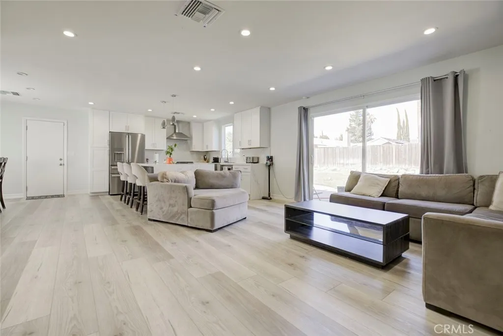 Move-in ready and beautifully remodeled, this home offers both style and flexibility. Featuring a two-car driveway and a two-car garage with potential for ADU conversion, the property blends modern comfort with future opportunity. Enjoy dual-pane windows, laminate flooring, recessed lighting, and a central HVAC system throughout. The stunning kitchen is a true centerpiece, showcasing a spacious quartz island with bar seating, abundant storage, semi-gloss cabinetry, quartz countertops, and a newly installed stainless-steel hood. Bathrooms have been thoughtfully upgraded, including a remodeled guest bath with dual sinks and a spacious primary bathroom highlighted by a custom walk-in shower with built-in bench, all designed by the current homeowner. Step outside to an expansive backyard offering endless possibilitiesan open canvas ideal for a pool, entertaining space, or your own private outdoor retreat. An exceptional opportunity not to be missed.