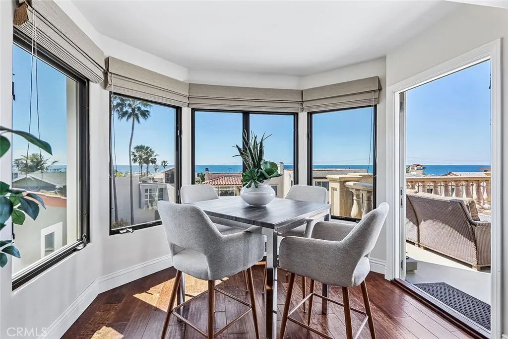A rare offering in coveted North Hermosa Beach this Ocean View single family home is just two blocks from the sand, in the desirable "between the piers" location. A beautifully appointed coastal residence that captures sweeping ocean views and offers a thoughtfully designed floor plan ideal for refined beachside living. The upper level is designed for both entertaining and everyday enjoyment, featuring an expansive living room with fireplace that opens to a generous ocean view deck perfect for sunset gatherings. The living space flows effortlessly into a beautifully finished kitchen with custom cabinetry, stone countertops, breakfast bar, and an inviting breakfast nook filled with natural light. Also on this level are a tucked away family room and an adjacent home office that could easily serve as a fourth bedroom, with a three quarter bath nearby. The entry level hosts three bedrooms including a serene primary suite with private deck, walk in closet, and a spa inspired bath designed as a peaceful retreat. Two additional bedrooms open through French doors to a private garden courtyard, creating a tranquil outdoor space for guests or quiet relaxation. Additional highlights include a two car garage with extensive storage plus four additional parking spaces, an exceptional convenience this close to the beach. Enjoy sweeping ocean views, a thoughtfully designed floor plan, and one of the South Bays most desirable North Hermosa locations.