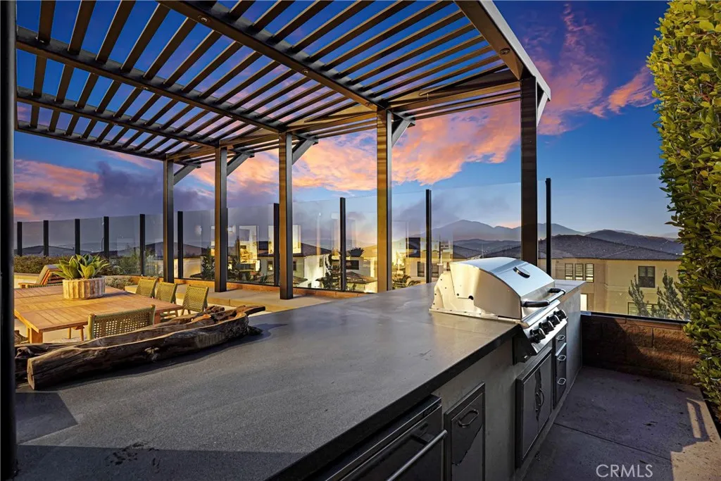 New photos reflect current status of the home. The home is beautifully staged and move-in ready with option to lease fully furnished. SHORT-TERM & LONG-TERM LEASES CONSIDERED. Immediate occupancy available NOW upon approved application. Private showings offered daily, including weekends. Set within Westcliffe at Porter Ranch, an elite 24-hour guard-gated community built by Toll Brothers, this 2022 custom estate has been thoughtfully designer-reimagined and offers approximately 5,464 square feet of sophisticated living across 5 bedrooms and 6 bathrooms. A striking double-door arrival opens to a dramatic foyer, establishing a sense of scale and refined architectural presence throughout. The chef's kitchen is equipped with upgraded appliances, and a dedicated laundry room with washer and dryer is conveniently located on the second level. The main level is designed for elevated living and entertaining, featuring a formal living room with fireplace, private cinema, wine cellar, guest powder room, and a full downstairs en-suite, ideal for executive guests or multigenerational accommodations. Every bedroom and bathroom has been meticulously customized with bespoke finishes and elevated materials. The expansive primary suite serves as a private retreat, complete with blackout roller shades, abundant natural light, and sweeping views of the San Fernando Mountains and the Los Angeles cityscape. Designed for seamless indoor-outdoor living, the resort-caliber grounds showcase a custom swimming pool with swim-up bar, raised spa, outdoor kitchen and BBQ, covered California room, Alumawoo