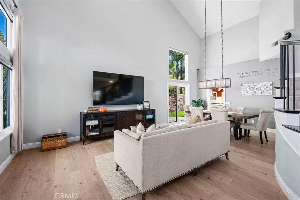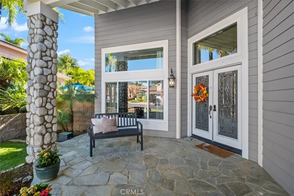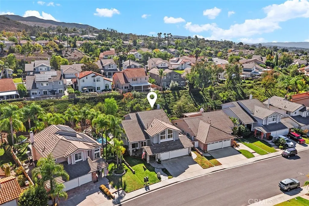 Welcome to this stunningly updated, move-in ready home nestled in one of the most desirable neighborhoods of South Orange County, where quiet streets, mountain views, and California sunshine create the perfect everyday backdrop. From the moment you arrive, youll feel the pride of ownership. A grand leaded-glass double door entry opens to a light-filled foyer and sweeping staircase, setting the stage for 2,539 Sgft. of sophisticated yet comfortable living. The open-concept 4 bedroom 3 bath + office floor plan sitting on almost 7,000 Sqft. seamlessly connects the formal living and dining areas to a warm, inviting family room centered around a custom fireplace and large sliding doors that bring the outdoors in. Enjoy effortless indoor-outdoor living with direct access to your private backyard from both dining room and family room, ideal for entertaining, family gatherings, or simply relaxing under the stars. The remodeled chefs kitchen is a true showpiece featuring premium stainless-steel appliances, custom solid wood cabinetry with rain-glass accents, a statement wood hood, granite counters, travertine backsplash, peninsula seating, a built-in wine bar, and a generous pantry. A private main-floor office (or optional 5th bedroom) with adjacent remodeled full bath and a walk-in glass shower make the layout ideal for guests, multi-generational living, or working from home. Upstairs, the spacious master suite is a serene retreat with vaulted ceilings, Plank flooring, lush views and privacy, a spa-inspired bath complete with dual vanity, granite counters, a soaking tub, step-in sh
