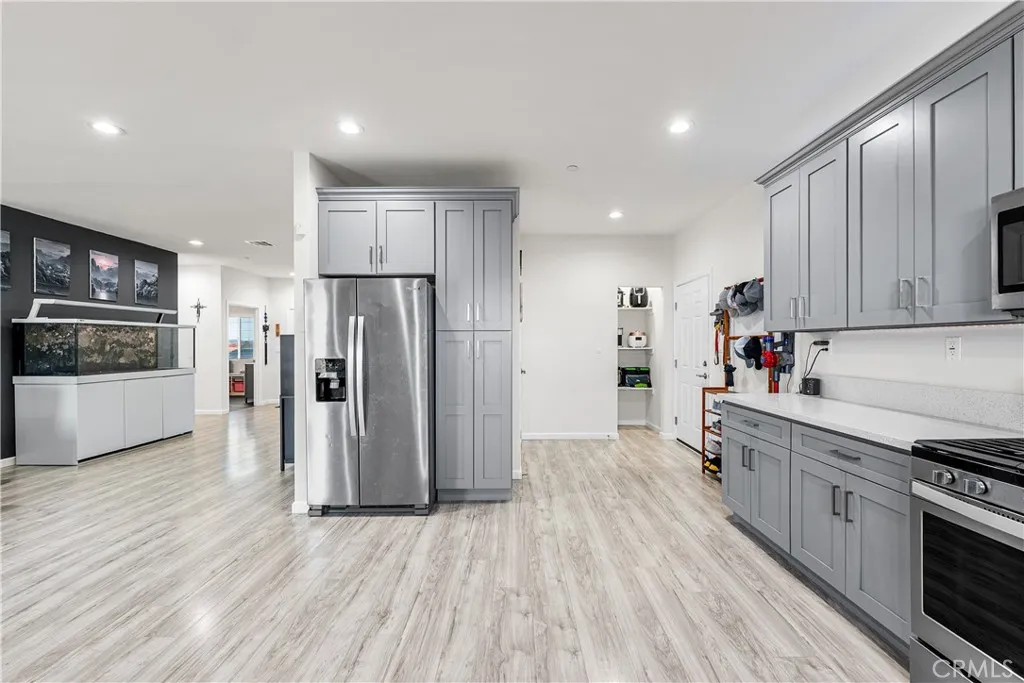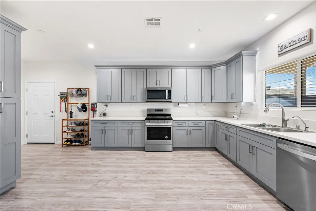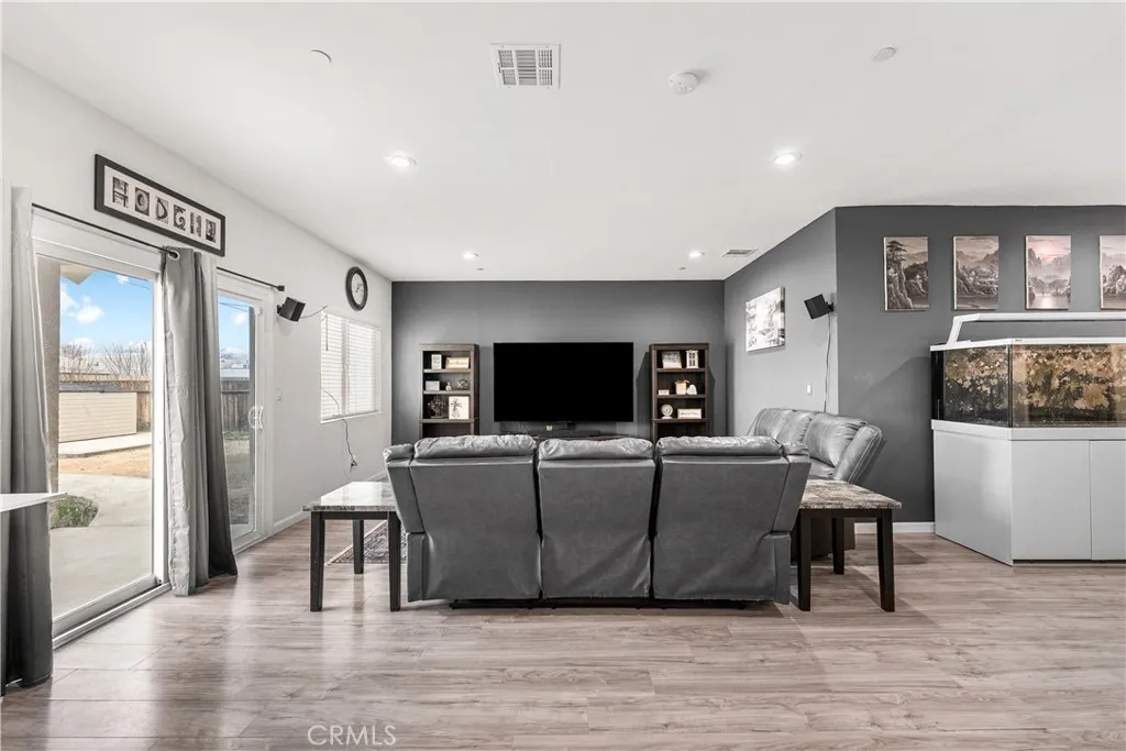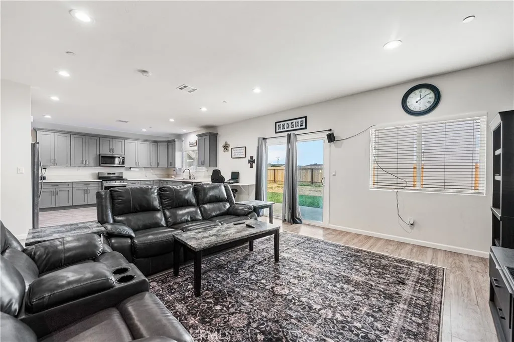 Welcome to this stunning 4-bedroom, 2.5-bathroom home that offers style, function, and energy savings with PAID OFF SOLAR! This thoughtfully designed home features an open-concept floor plan where the spacious kitchen seamlessly flows into the living roomperfect for everyday living and entertaining. The kitchen is a dream with gorgeous quartz countertops, ample cabinet and counter space, and a dedicated pantry area ideal for small appliances or overflow storage. The gray cabinetry perfectly complements the vinyl plank flooring and modern accent walls, creating a clean and contemporary feel throughout. The living room is generously sized and easily accommodates a variety of furniture arrangements, while the split-wing layout provides added privacy. The primary suite is oversized and offers enough room for a king-size bed plus furniture, with a luxurious en-suite bathroom featuring dual vanities and custom tile work in the shower. Step outside to a covered patio, landscaped grass area perfect for kids and pets, and cement walkways that connect to a storage building and outdoor entertaining spaceoffering both practicality and room to enjoy the outdoors. Located just minutes from Edwards Air Force Base, parks, and local restuarantsthis home is the full package!