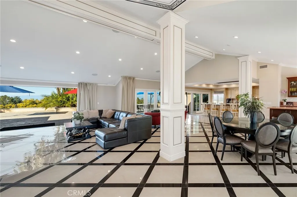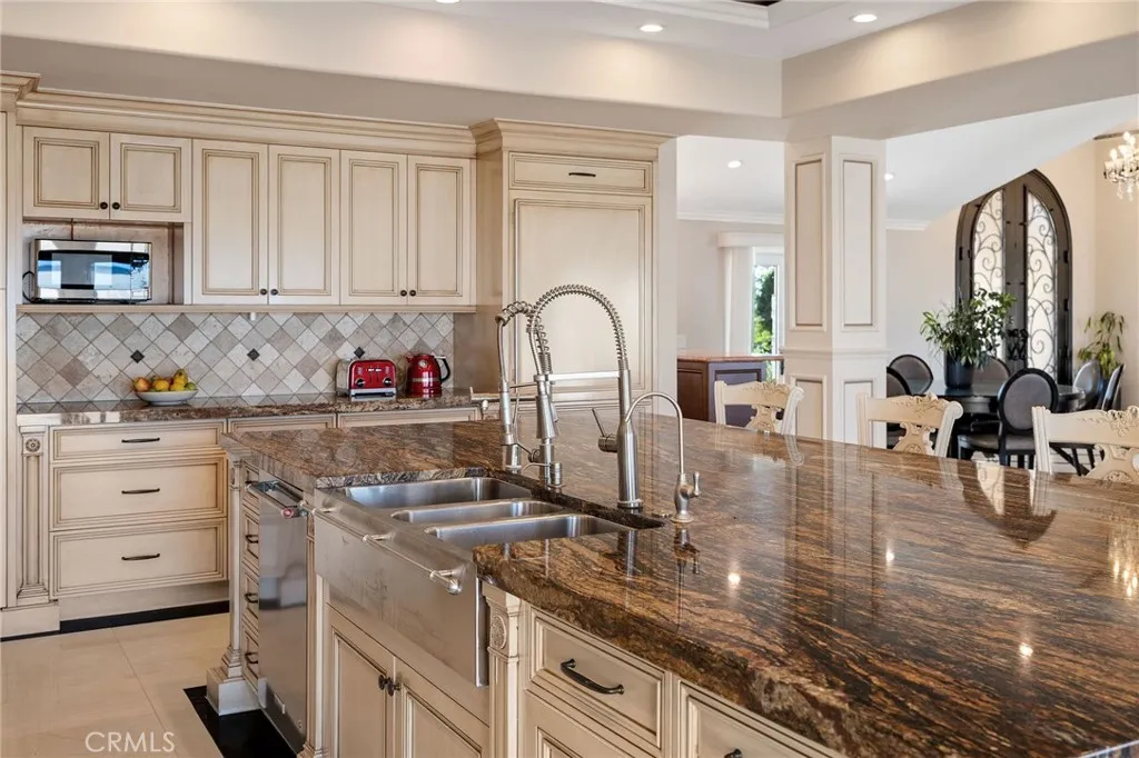 Love at first sight. The circular, stone horseshoe driveway with steps leads you to this thoughtfully curated, extraordinary single level residence with impeccable craftsmanship and breathtaking views, on an over 18,000 square foot lot, set atop on a cul-de-sac in the exclusive and sought after Del Cerro neighborhood of Palos Verdes. As you step inside this remarkable and exquisitely custom-designed home through the grand front doors, you are greeted with a spectacular expansive, open-concept floor plan with soaring ceilings and a wall of windows and bi-fold sliding glass doors, flowing seamlessly, capturing stunning views of city lights and ocean, thoughtfully integrated indoor and outdoor living for effortless entertaining and an uninterrupted serenity. This exceptional floor plan and the sprawling backyard and patio with intricate stonework integrates living, dining and entertaining, a year-round comfort and enjoyment. An impressive signature marble fireplace anchored by two custom hand-painted walls and built-in seating invites extra warmth to the living room. The dining area is adjacent to the elegantly designed bar and an opulent chandelier. A standout feature, a culinary master piece, a tastefully-designed kitchen with twinkling lights, attractive center island and seating, two sub-zero refrigerators, a Wolf stove is ideally situated adjacent to the great room. On the West side, a master bedroom with view, ample closet space and an impressive ensuite bathroom. Three more bedrooms and an attractive bathroom with double sinks and shower and an elaborately designed powd