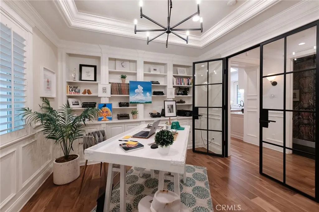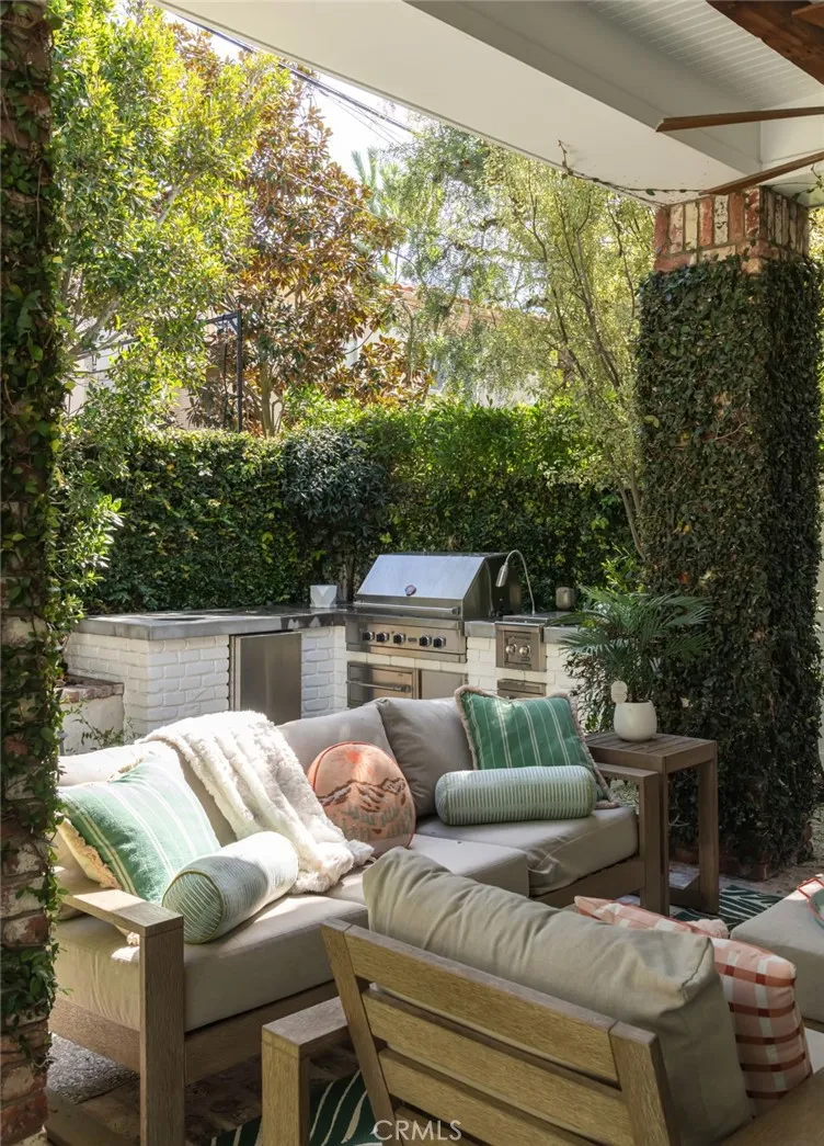 Located on a coveted block in Manhattan Beachs Tree Section, 2100 Pine Avenue is a custom-crafted residence distinguished by warmth, architectural character, and an exceptional level of detail. Built in 2008 and meticulously maintained, the home offers five bedrooms, four-and-a-half baths, and approximately 3,180 square feet of thoughtfully designed living space. From the moment you arrive, the home conveys a sense of story and substance that is increasingly rare. Rich with bespoke detail, the interiors are defined by beamed ceilings, walnut floors, custom millwork, and beautifully layered finishes that bring depth, texture, and timeless appeal to every room. Thoughtfully designed and deeply inviting, the home balances refined craftsmanship with effortless livability. At the center of the home, the chefs kitchen is both striking and functional, featuring an oversized Calacatta marble island, a 48-inch six-burner Wolf range with grill, abundant storage, and a butlers pantry with wine refrigerator. Adjacent living spaces open seamlessly to a private backyard retreat complete with a built-in outdoor kitchen, fireplace, additional wine refrigerator and dedicated dining area designed for year-round entertaining. Privately situated, the primary suite offers soaring ceilings and a true sense of retreat, complemented by a custom California Closets walk-in closet that pairs beauty with exceptional function. Additional highlights include dual-zone central air conditioning, EV charging capability, and a finished garage with built-in storage.