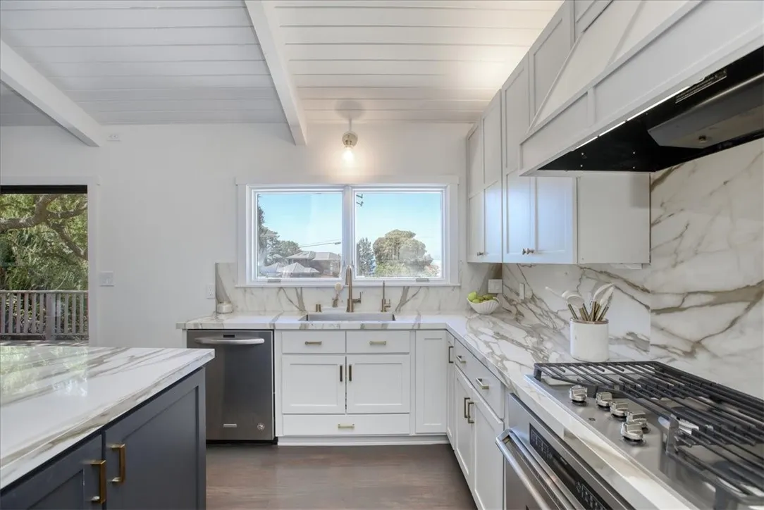 SINGLE LEVEL living on a third of an acre (14,124 SF). The original home is a ranch style house with two bedrooms and two bathrooms, the living room, dining area and kitchen, plus a two car garage. The current owners have completely remodeled the house, and while doing so, they added a permitted third bedroom and an additional three-quarter bath downstairs. The kitchen is gorgeous, the bathrooms are the same! Granite countertops in the kitchen and bathrooms. The kitchen boasts stainless steel appliances, while all three bathrooms have heated floors! And trust me, you didnt know how much you like heated bathroom floors until you have heated floors in your bathroom! The open floor plan lends nicely to entertaining family and friends and the beautiful wood-burning fireplace adds a nice touch! The newly added downstairs space is accessible from both inside and outside. The large back deck overlooks the large parcel, then out to the Pacific Ocean. On your way to the oversized two car garage (with tons of storage) is a second seating area that could also be used as an office with an ocean view! The large backyard also includes a very private hot tub.