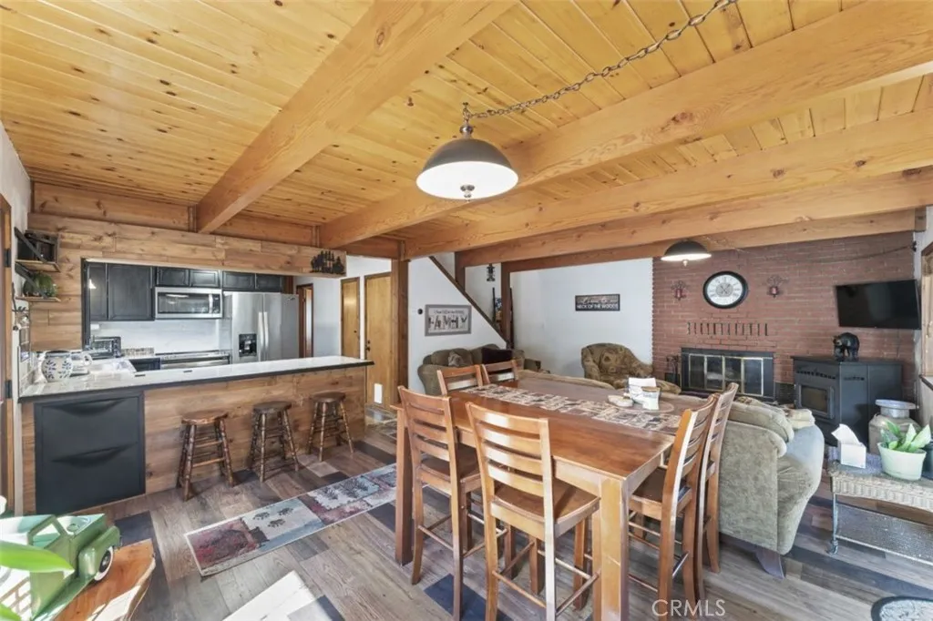 Charming mountain home located in the desirable community of Pine Mountain Club, offering peaceful surroundings and direct access to nature. This lovely 3-bedroom, 2-bath home backs to a tranquil greenbelt with a seasonal creek, creating a serene setting you can enjoy year-round. The main living area features both a cozy pellet stove and a classic wood-burning fireplace, providing warmth and character during cool mountain evenings. A large deck off the main room overlooks the greenbelt and seasonal creek, perfect for morning coffee, relaxing, or entertaining while enjoying the beautiful mountain surroundings. The home features three decks, providing multiple outdoor spaces to take in the mountain air and surrounding forest. There is also an enclosed dog run, ideal for keeping pets safe while they enjoy the outdoors. Additional features include a partially finished basement, ideal for a workshop, game room, or additional storage. The property is situated on a quiet cul-de-sac and includes a horseshoe driveway with carport parking, offering convenient access and ample parking. A wonderful opportunity to enjoy comfortable mountain living with privacy, nature, and outdoor space in the heart of Pine Mountain Club.