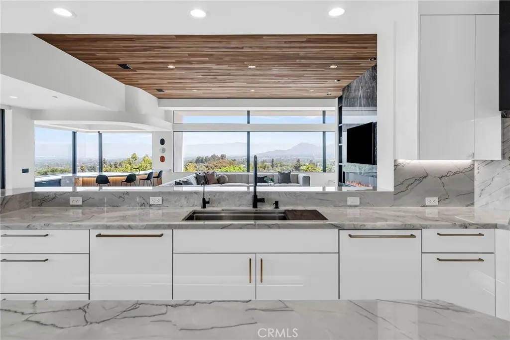 Welcome to the pinnacle of luxury living at 2130 Old Quarry Road, nestled in the prestigious enclave of Victoria Woods, Riverside, CA. Perched atop a private hill, this architectural masterpiece offers over 9,252 square feet of refined elegance, unmatched privacy, and sweeping 360-degree panoramic views. Fresh off an over two year comprehensive multi-million dollar transformation of finishes and systems resulting in an effectively brand new state of the art property! A true sanctuary, this estate masterfully blends contemporary design, high-end finishes, and resort-style amenities to create an atmosphere of quiet grandeur. From the entrance, you're greeted by a show-stopping, one-of-a-kind natural stone fireplacea centerpiece that sets the tone for the sophisticated interiors beyond. The home showcases exquisite details including Rosa Onyx, Botanic Crystal Quartzite, Lasa Gold, custom oak millwork, and wide-plank French Oak flooring. Designed for elevated living and effortless entertaining, this estate includes multiple indoor bars, a wine bar, entertainment areas, and a spa-quality primary suite with a dual-entry bath, steam room, private bar, and spectacular views. The gourmet chefs kitchen features Sub-Zero, Wolf, and Cove appliances, plus a commercial-grade exhaust system. An elegant family room with multiple seating areas and a corner bar offers an inviting ambiance. The property is equipped with Crestron Smart Home automation, an elevator, and a full house water filtration system (SpringWell). Nearly every room enjoys stunning natural light and breathtaking vistas, en