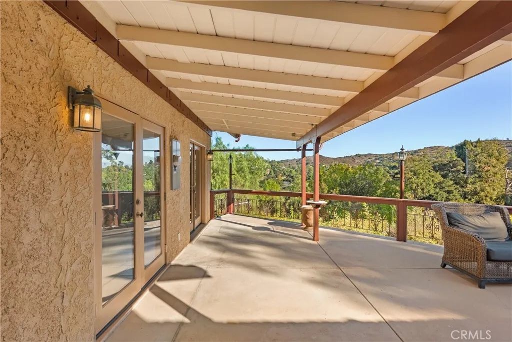 Nestled into the hillside on a quiet street in Woodland Hills, this gated corner lot property offers breathtaking views of the Valley and surrounding hills. Step inside to a spacious living room that's flooded with natural light, accentuating the warmth of the original hardwood floors. At the heart of the home lies a designer chefs kitchen, featuring high-end JennAir appliances, gorgeous marble countertops, a hidden walk-in pantry and inviting breakfast nook. Two sets of French doors lead out to a private covered patio with an in-ground spa, the perfect place to relax and soak in the unobstructed views. This home consists of four generously sized bedrooms (two on each level) and three full bathrooms (two on the main level and one upstairs). Each bedroom has its own walk-in closet, ensuring ample storage throughout. Additional highlights include a laundry closet, EV charger, wrap around front patio and oversized two-car garage with an overhang for additional covered parking. Ideally located south of the Boulevard, enjoy easy access to local shops/restaurants, the Woodland Hills Country Club and so much more.