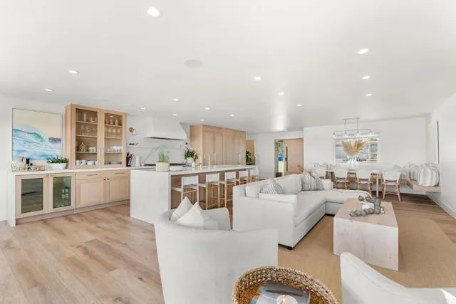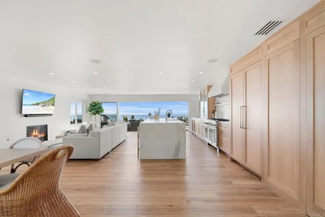 Spectacular Panoramic Ocean Views from this completely upgraded Cardiff by the Sea home. No expense has been spared with the luxury upgrades and decor this home has. This is a fully furnished seasonal rental with a 30 day minimum stay, but shorter stays are negotiable. Prices may vary based on the time of year. Current availability December 1, 2024 - January 31, 2025 & April 2 - July 6, 2025, (check for availability). Main floor features large open floorplan. All newly renovated and upgraded kitchen, living room, dining area which open up to your large balcony with some of the best ocean view you will find. Watch our beautiful San Diego Sunsets every night while enjoying a glass of wine, or have your morning coffee while listening to waves. You will also find the Master Suite on the main floor, also with the same spectacular ocean views. The next floor downstairs you will find two more bedroom, each with their own full bathrooms, and another great family room and your own balcony with balcony swing. Home comes equipped with a fully stocked kitchen for the home chef, plenty of towels and extra linens. Outdoor shower for when you are coming back from the beach. Sonos surround sound system, Wi-Fi, Smart TV's. Some of the other features include walk in pantry, coffee maker, Keurig, toaster oven, barbecue grill, wine fridge. This home has it all. Access to one garage parking spot and two driveway spots, or street parking. Will entertain a discount for stays between 2-4 months. There is a small one bedroom unit below the home with that is occupied by a single tenant. No common ar