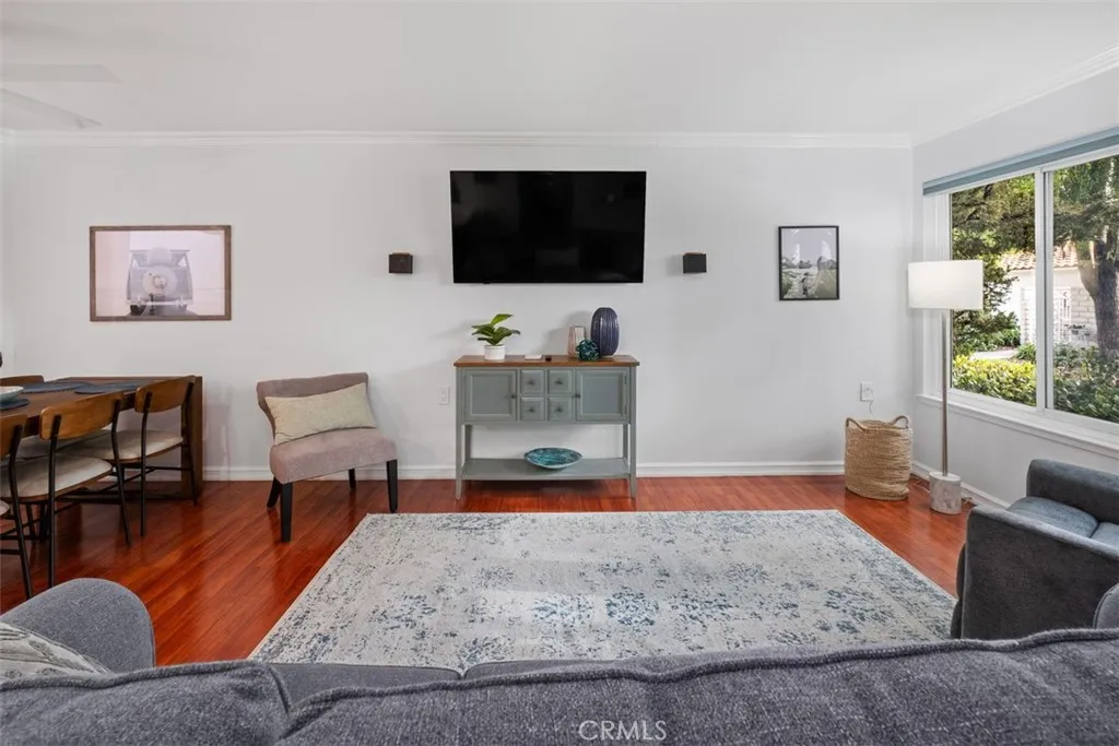 NOW AVAILABLE TO LEASE NOVEMBER 21, 2026 thru DECEMBER 30, 2026 and then MARCH 3, 2027 and thru 2027 . Discover the epitome of comfortable living in this meticulously remodeled 2-bedroom, 2 bath furnished rental, featuring the sought-after New Valencia Model in Laguna Woods vibrant 55+ community. Spanning estimated 1175 square feet, revel in the spaciousness of a home designed for ease, with no steps and no neighbors above. Enchanting archway leads you into a private front patio space, perfect retreat for relaxation. The interior boasts contemporary charm, with recent renovations gracing every corner, complemented by new furnishings and bedding for a peaceful stay. A skylight and solar tubes provide natural light to the condo and hardwood floors throughout. Living room space has new furniture throughout and a built-in cabinet space to hold special items. Small den or office space just off dining room area can also be used for more sleeping space with a futon coach. The open kitchen space has newer appliances and cabinets, quartz countertops, all new plates, pots and pans and utensils and everything you would need to enjoy your stay. Enjoy the convenience of modern living with mini-split AC/heat units in living space and in each en-suite bedroom. Each bathroom has been updated with walk in showers, tile throughout, new vanities and storage space. Embrace a lifestyle of comfort and convenience in this thoughtfully appointed Laguna Woods gem. Enjoy all the amenities, clubs, golf course, pools, gardens and stables offered at Laguna Woods. Dogs are welcome in this furnished cond