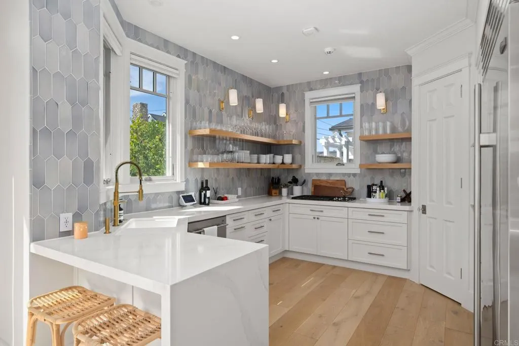 Life in the Del Mar Beach Colony has a rhythm all its ownmorning walks along the shoreline, afternoons filled with ocean air and sunshine, and evenings when the village comes alive as the sun sets over the Pacific. 2211 Ocean Front places you right in the heart of it all, just steps from the beach and an easy stroll to some of Del Mars most beloved coastal destinations. Recently renovated, the home embraces a bright, modern coastal style that feels both relaxed and refined. The coastal chic residence offers 4 bedrooms and 4.5 bathrooms, with light-filled interiors and thoughtfully designed spaces that complement the surrounding beachside setting. Designed for Del Mars signature indooroutdoor lifestyle, the home flows effortlessly to an inviting outdoor living area complete with a built-in BBQ, ideal for relaxed evenings with friends after a day by the ocean. An oversized in-ground spa provides the perfect place to unwind beneath the coastal sky. Upstairs, the primary suite offers a peaceful retreat featuring a spacious walk-in closet and a private balcony with ocean views, where the sound of the waves and the sea breeze create a truly relaxing setting. A detached guest suite adds flexibility and privacy for visiting family or friends, making the home equally suited for everyday coastal living or hosting guests throughout the year. Beyond the home, the walkability of the Beach Colony lifestyle truly sets this location apart. From here, the beach is just moments away, while dinner at Jake's Del Mar, sunset views at Poseidon on the Beach, or an evening out at Del Mar Plaza are