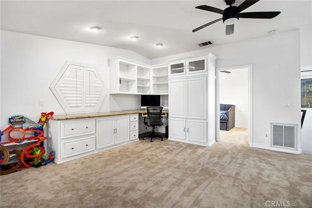 Welcome to this stunning custom Canyon Lake pool home, perfectly positioned on a quiet cul-de-sac with breathtaking views and incredible indoor-outdoor living. From the moment you arrive, pride of ownership, thoughtful upgrades, and a true resort-style lifestyle shine throughout. Step inside to soaring natural light, beautiful finishes, and an open-concept layout ideal for both everyday living and entertaining. The kitchen offers generous storage, granite countertops, tile flooring, walk-in pantry, and a raised breakfast bar that flows seamlessly into the dining area. French doors lead to an expansive balcony the perfect place to enjoy sunset skies and lake views while the inviting living room below features a striking rock fireplace and dramatic architectural charm. Dual-pane windows, plantation shutters, and a whole-house attic fan keep the home energy-efficient, comfortable, and stylish year-round. The primary suite is a true retreat, featuring a private walk-out balcony with peaceful lake views, a spa-inspired bath with jacuzzi soaking tub, and a generous walk-in closet. Additional bedrooms are thoughtfully separated across the home, offering privacy and flexible living options, along with a spacious loft and built-in nook perfect for a home office, playroom, or secondary living space. Step outside into your own private resort. The sparkling faux-rock pool features a waterfall, waterslide, spa, and energy-efficient solar heating creating the ultimate backyard escape. Entertain year-round under the covered patio with a built-in BBQ island, sink, kegerator, and TV mou