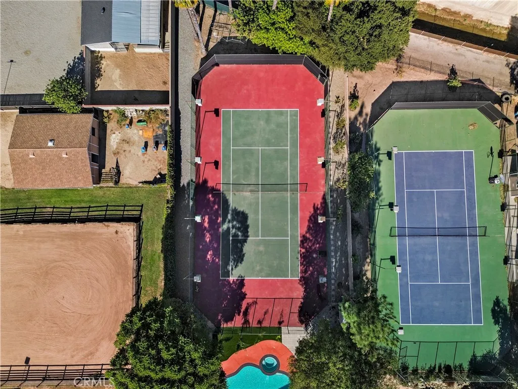 This fully renovated estate sits on a private 0.61-acre lot, offering a rare blend of luxury, comfort, and resort-style living. A light-filled foyer opens to elegant living spaces, including a formal living room with fireplace, an entertainment area with bar, and a dining room overlooking manicured grounds. Designed for seamless indoor-outdoor living, the home features an open layout with high ceilings, dual fireplaces, and expansive sliding doors leading to a family room and vine-covered outdoor dining area. The remodeled chefs kitchen showcases high-end finishes and premium stainless steel appliances. The residence includes four spacious en-suite bedrooms with walk-in closets. The primary suite offers dual walk-in closets with a built-in safe and a spa-style bath with sauna and jacuzzi. Resort-style grounds feature a pool, multiple seating areas, a professional tennis court, a basketball court, and a private bike track. The property is also designated as a horse property, with ample space for equestrian facilities. Additional highlights include a three-car garage, RV access, and parking for six vehicles. Situated in a highly exclusive enclave favored by Hollywood elite and high-profile individuals, this property offers exceptional privacy and prestige. The neighborhood is renowned for its serene environment, expansive estates, and close proximity to the heart of the entertainment industry, making it one of Los Angeles most desirable residential locations.