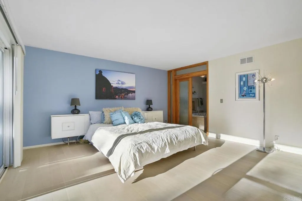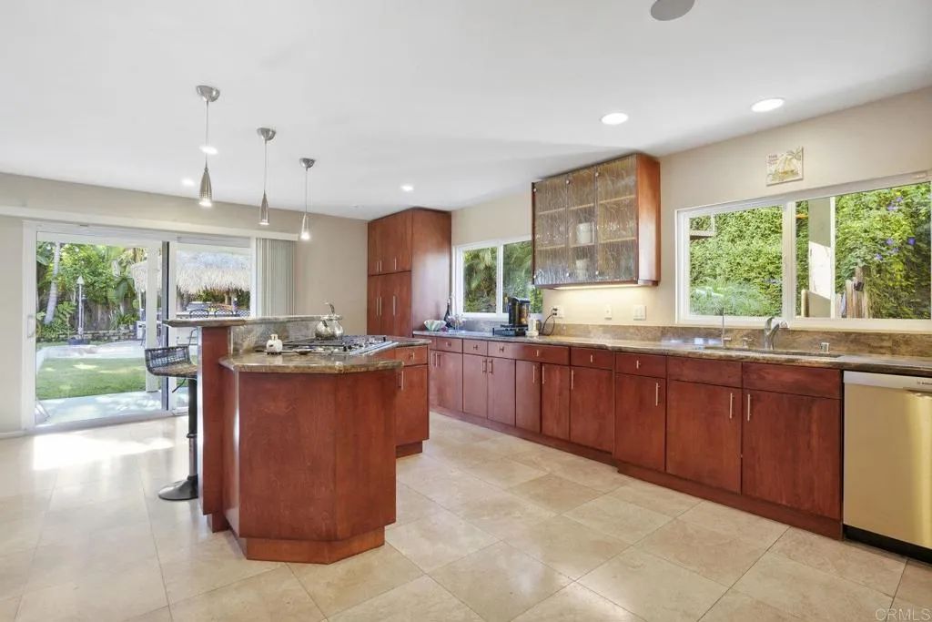 Views out to the bay, ocean, city, Coronado Bridge and Sea World fireworks are served up from this refined Pacifica home. In a nod to the location, this two story beach close home nestled on a quiet cul de sac in the sought after Pacifica neighborhood of north Pacific Beach combines island vibes with mid-century cool. Flooded with natural light and sited on a private large lot with mature landscaping, this 4 bedroom, 2.5 bath residence is minutes to the beaches and offers easy access to freeways and shopping. Featuring high-end finishes, an entertainers dream backyard anchored with a full tiki bar, fire pit and built-in grill area as well as 2 ocean view decks, one complete with a fire feature and built-in grill/kitchen allowing you to relax and chill after a day at the beach gazing at the star filled sky or watching the fireworks. The strategic use of windows and glass doors throughout the home shape the aesthetic, functionality, and connection to the outdoors. Synthesizing West Coast Modernist design with tropically influenced design combined with mid-century modern touches, this home artfully creates an intimate relationship with the ocean and is rooted in the everyday ethos that PB is globally known forone of sand, surf, community, and connection with nature.