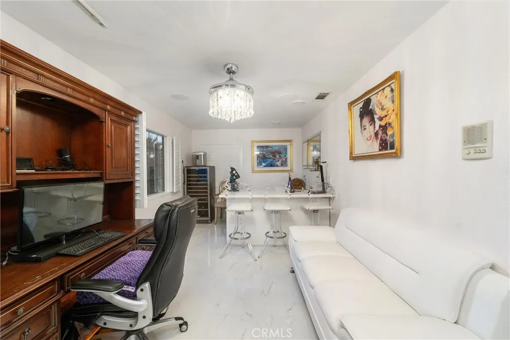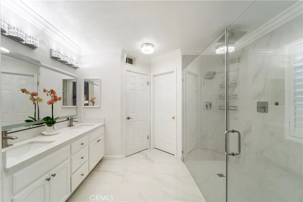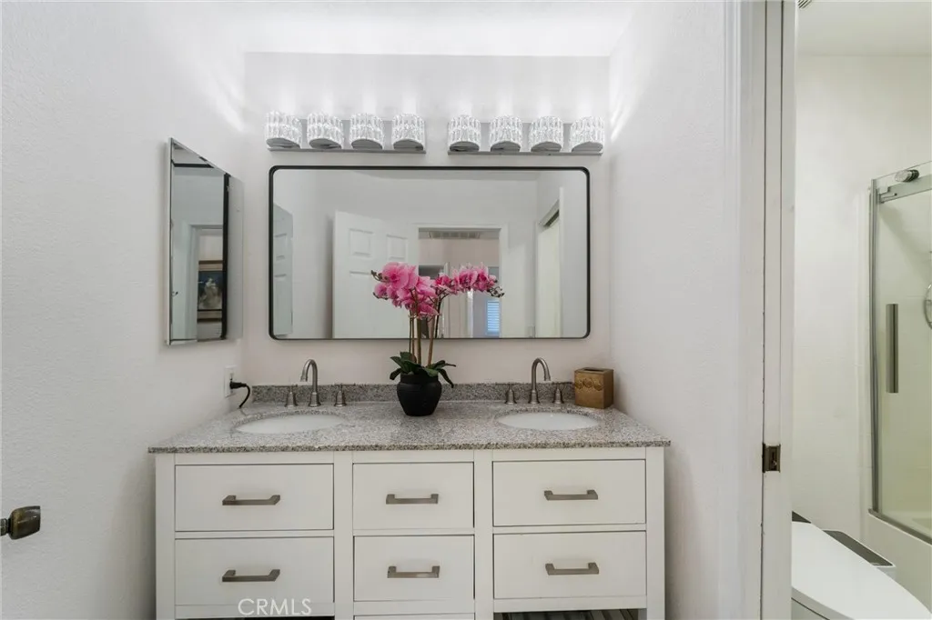 Welcome to this beautifully remodeled contemporary home located at the heart of the guard-gated community of Canyon Lake. With controlled access through staffed entry gates, this private community offers a distinctive residential setting centered around one of Southern Californias most unique lake lifestyles. This elegant white residence features soaring ceilings and an open floor plan that creates a bright, airy atmosphere from the moment you enter. A custom black-and-gold iron-and-glass front door makes a striking first impression, opening to a thoughtfully designed interior featuring a custom black-and-gold iron staircase railing, porcelain tile flooring, and elegant chandeliers add an inviting glow throughout the home. Two fireplaces add warmth and character to the modern design, while high ceilings throughout enhance the sense of space in every room. The expansive main-floor primary suite offers a relaxing retreat with a spa-inspired bathroom and an oversized walk-in shower. Upstairs youll find two additional bedrooms and a full bathroom, along with a spacious bonus/game room complete with a wet bar and convenient half bathan ideal space for entertaining or relaxing. Large windows fill the upper level with natural light, and the bonus room captures partial views of Canyon Lake, a welcome reminder of the homes setting within this vibrant lake community. Elegant curtains frame the open living spaces, while the bright all-white interior creates a timeless look that feels both refined and contemporary. Step outside to your private backyard oasis featuring a beautiful pool,