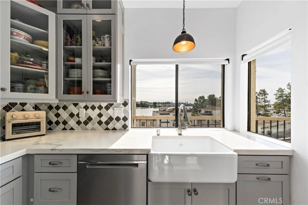 SIMPLY PUT, THIS IS THE NICEST MALLORCA CONTESSA PLAN TO EVER COME ON THE MARKET.... Proximity to the lower pool/spa, being next to an access to the Lakefront, the ease in visiting Plaza Del Lago without being so close that noise is a factor and the value of having no neighboring building directly to the south of you are all wonderful features. Add-on being one street off the lakefront, looking down on the greenbelt pathway affording you an unobstructed view of a portion of the Mallorca Promenade, the Bulkhead and boats docked on the lake, coupled with the lack of any third story homes on either side of the walkway and it is no wonder that this is one of the very best views in Mallorca. Not only is the Lake staring you in the face, your view is enhanced by visions of East Beach and the Oak Preserve. Don't overlook the angle the home rests on. Facing South East, that rear balcony gets sunshine all day long, making this one of the best naturally lighted homes in the tract. There is so much sunshine, 3 retractable awnings have been added to create an option between sun and shade; warm and cool. That angle helps capture the gentile afternoon breeze that travels south to north. At the same time, that positioning protects from the elements brought by the Santa Ana Winds that blow north to south. But what makes this home most unique is what has been done to the kitchen and to the primary bath. Widening the kitchen doorway from the original 32 inches to an impressive 54 inches, and raising the entire ceiling and access by 2 feet creates quite the impression. The wine cooler and the