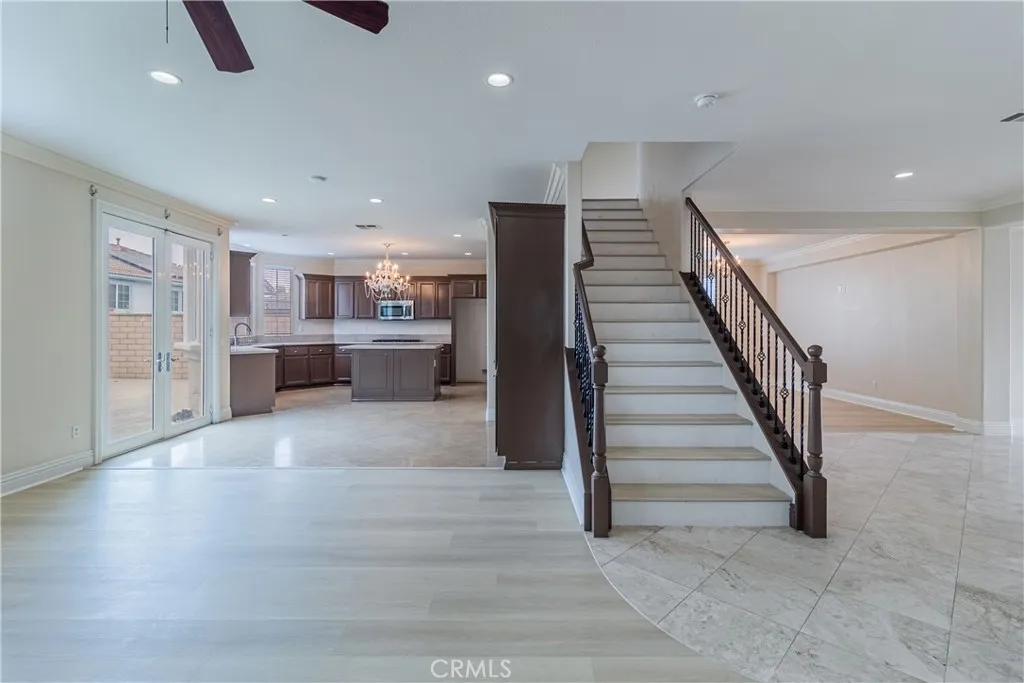 This is stunning, spacious home is located just minuties from TOP RATED schools with NO HOA in desirable neighbourhood of south Corona. Home features five bedrooms, including one downstairs, offers over 4,100 square feet of living space. Highlights include an open foyer with travertine flooring, high ceilings with abundant natural light, formal living with glass doors, seprate dining area for big family geatherings, a cozy family room with fireplace, a dream kitchen with ample counter top, center island, built in appliances, walk in pantry and serving station for dinning area. An upstairs spaciopus loft for family entertainment with mountain views. The primary bedroom boasts a retreat with soaking tub, shower, dual vanities, and a large walk-in closet, while other bedrooms are of good size providing lots of natural light making home bright & airy. One of the bedroom is with its own bathroom. The property also features a good-sized backyard with potential for RV parking, and is freshly painted both inside and out and new flooring.Won't be disappointed seeeing it.