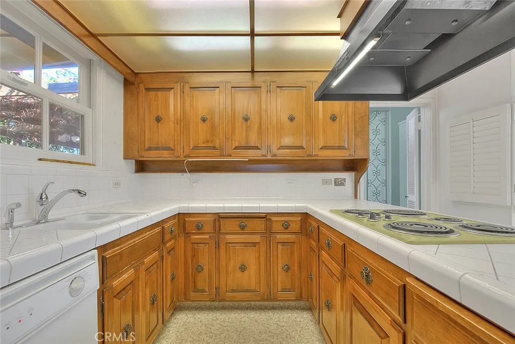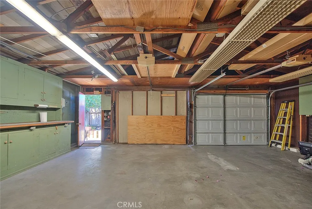 Fantastic Mid-Century home with HUGE detached oversized garage (approximately 900 sq ft) that could have possible ADU potential! (Buyer must verify) Located in the desirable City of Upland this home enjoys 3 bedrooms, 1 1/2 bathrooms, a spacious living room with rock fireplace and a sizeable family room with a second fireplace. High ceilings in the entertaining spaces of the home create an inviting and open atmosphere. For those who love mid-century architecture this home is sure to please, it showcases fabulous windows throughout that bring in an abundance of natural light, built-ins that offer wonderful storage right as you enter with an oversized closet, the hallway boasts linen cabinetry, off the kitchen there is large bank of cabinets that could be used as pantry/or other storage needs and there is additional storage near the laundry area and 1/2 bathroom. There are shutters in almost every room that allow for privacy when not enjoying the daylight or sunny times of the day. The kitchen has a charming brick accent wall, plenty of counter space to work, double ovens, electric cooktop and opens to the family room which also features space for dining. Side patio offers an outdoor space to enjoy and mature trees on the property create a private setting for this wonderful property. The garage is IMPRESSIVE, with so many options! If home business needs require extra storage or work space this garage will meet those needs! Extensive built-ins, work counters, plus an enclosed additional storage room within the garage, SO MUCH SPACE. Conveniently located just a short drive from