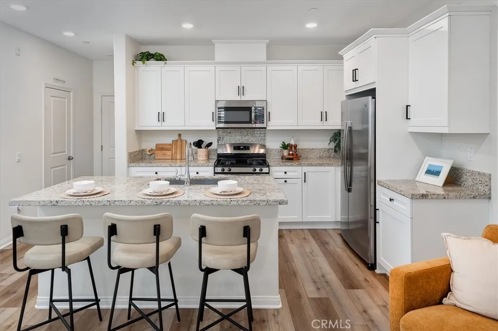 3 bedroom plus loft townhome with 2.5 bathrooms, 1490 sq ft, an attached 2 car garage, and an upstairs laundry room in the Concord at River Village community (a WARRANTABLE and VA approved complex with low HOA dues!) Built in 2020, this home features luxury vinyl plank flooring, plantation shutters, energy-efficient solar, a QuietCool whole house fan, tankless water heater, and an EV charging outlet. The first floor has an open concept layout with a large kitchen island, granite countertops, a spacious pantry, stainless steel appliances, dining area, living room, powder room, and direct garage access. The second floor includes the primary suite with dual sinks and a walk-in closet, two additional bedrooms, a full bathroom, a loft, and a dedicated laundry room. This home is located in a quiet section of the community with no front neighbors and a private patio. Community amenities include a resort-style pool, spa, clubhouse, BBQ area, and a tot lot. There is also a convenient neighborhood path that provides access to Central Park. Close proximity to shopping, dining, bike paths, and local conveniences. If you are searching for a newer Saugus home with modern upgrades, efficient systems, and a low-maintenance lifestyle, this is an excellent opportunity. Low HOA & mello roos. Near Emblem Elementary, Arroyo Seco JHS, and Saugus High School!