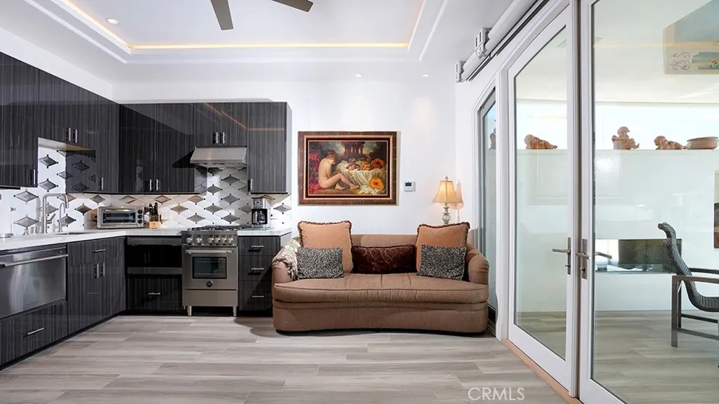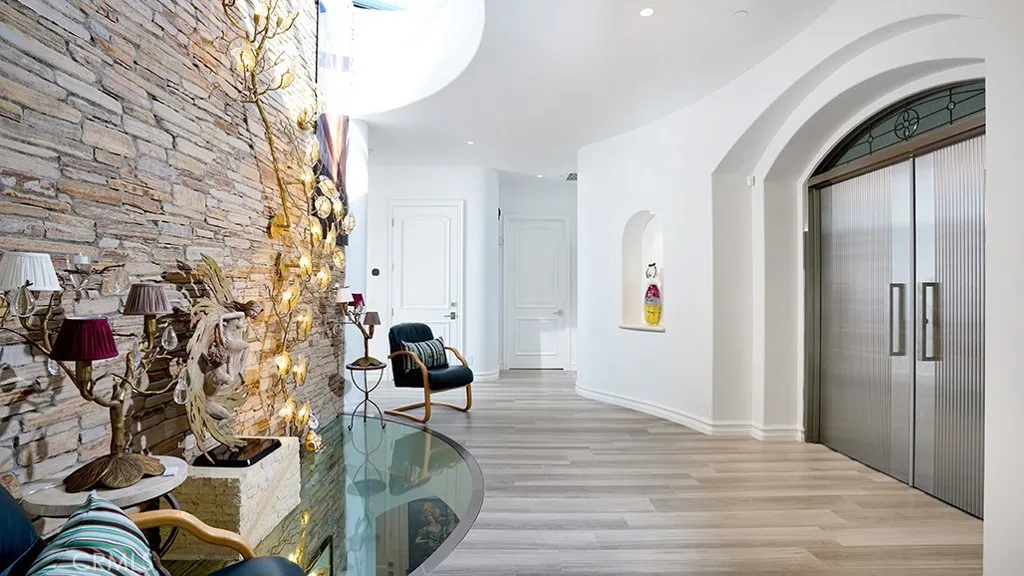 Perched atop prestigious guard-gated Monarch Point, this reimagined coastal estate commands unobstructed panoramic views stretching across the coastline, Dana Point, The Ritz-Carlton, and Monarch Bay. Architecture, scale, and setting converge in a residence designed to celebrate light, volume, and curated artistry. Originally constructed in 1999 and masterfully and totally remodeled throughout in 2023 by renowned architect Karl Francis Dakteris the interior unfolds across two levels with four bedrooms, five full baths, and one half baths on an 11,375 square foot homesite with outdoor spaces that enhance dining, primary retreat, and ocean-view deck, further elevating proportion and presence. Dramatic 20-foot entry crowned by a custom Murano glass chandelier introduces interiors conceived as gallery space. Architectural finishes read as sculptural elements, with dedicated art walls and multiple niches intentionally integrated to showcase collections. Hand-painted ceiling frescoes by mural artist Donovan Fitzgerald add bespoke dimension and refinement throughout. Walls of Sierra Pacific windows and frameless Coverglass folding doors dissolve boundaries between interior and exterior environments, framing whitewater vistas and sunset horizons. Property exudes California lifestyle, as indoor and outdoor living becomes one, creating seamless flow for both everyday living and elevated entertaining. Chefs kitchen balances precision and beauty with Cantoni cabinetry, Calacatta porcelain surfaces, and professional-grade Thermador and Sub-Zero appliances. Expansive gathering areas anch