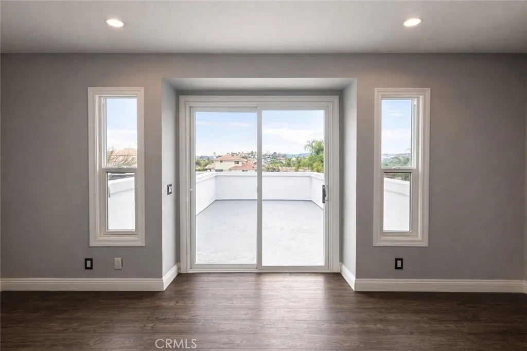 Exquisite modern living in the private, gated Canyon Lake community. Situated at the end of a quiet premier cul-de-sac, this turnkey 5-bedroom, 3-bath home with office sits on a spacious 9,148 sq ft lot and offers RV/boat parking, a side-facing 2-car garage, and extended driveway space. Soaring foyer with skylight, contemporary color palette, and upgraded staircase featuring designer tile and sleek black railings. The heart of the home is a stunning, fully upgraded chefs kitchen featuring seamless concrete countertops with custom design detail, matte black cabinetry, white subway tile backsplash, and a brand-new stainless steel appliance suite including oven, cooktop, dishwasher, and microwave. A recessed black tray ceiling with integrated LED lighting creates dramatic depth, while the oversized peninsula bar, massive walk-in pantry/bar area, and designer sink make the space ideal for cooking and entertaining. Large windows bring in abundant natural light, and durable large-format tile flooring ensures everyday practicality. The main level includes a guest bedroom plus a flexible bonus room perfect for an office, gym, or den with private outdoor access. Wood stairs lead to the upper level with modern laminate flooring throughout high-traffic areas. The primary suite is a true retreat, complete with a private balcony, dual closets with added storage, and a breathtaking new en-suite bath with designer fixtures and lighting. Major system upgrades provide comfort and efficiency, including full insulation and new 8-inch AC ducting for optimal airflow, a brand-new 5-ton AC unit,