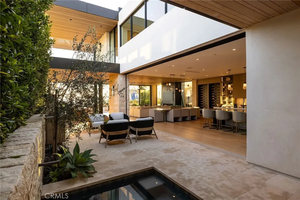 Perched along one of the most coveted stretches of Cliff Drive, this newer-construction architectural masterpiece captures unobstructed sit-down ocean and harbor views from nearly every primary living space. A rare collaboration between Brandon Architects, Erica Bryen Design, and Gonterman Construction, the approximately 5,200-square-foot residence offers 5 bedrooms and 6.5 baths, thoughtfully designed for elevated coastal living and effortless entertaining. Expansive walls of glass create seamless indoor/outdoor flow to two private patios, one with in ground jacuzzi, and a spectacular roof deck with bar, perfectly positioned for sunset entertaining- creating multiple resort-inspired outdoor living environments. Inside, warm-modern interiors are defined by wide-plank flooring, custom millwork, statement stone surfaces, designer lighting, and a striking temperature-controlled wine wall. The showpiece kitchen anchors the main level with bespoke cabinetry, oversized island, and curated finishes, opening to ocean-view living and dining spaces. A private office, beautifully appointed guest suites, and a serene primary retreat with spa-inspired bath complete the interior. An elevator services all levels, enhancing livability, while additional highlights include a three-car garage and whole-house soft water and filtration system. Meticulously executed and perfectly positioned, this is a rare opportunity to own one of the finest newer homes along Cliff Drive in Newport Beach.